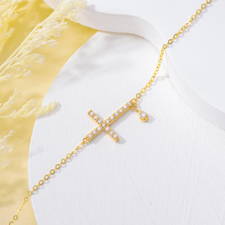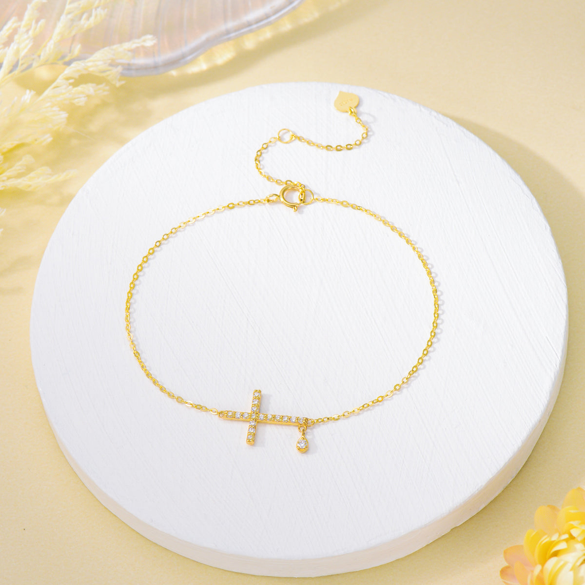 10K Gold Cubic Zirconia Cross & Drop Shape Charm Bracelet