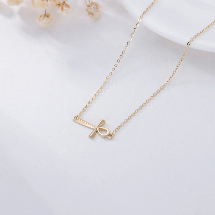 14K Gold Cross Pendant Necklace Ankh Cross Sideway Necklace