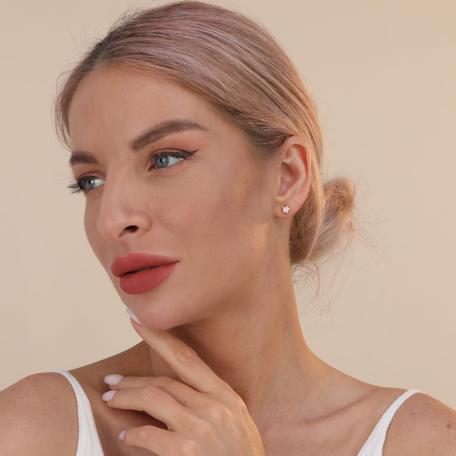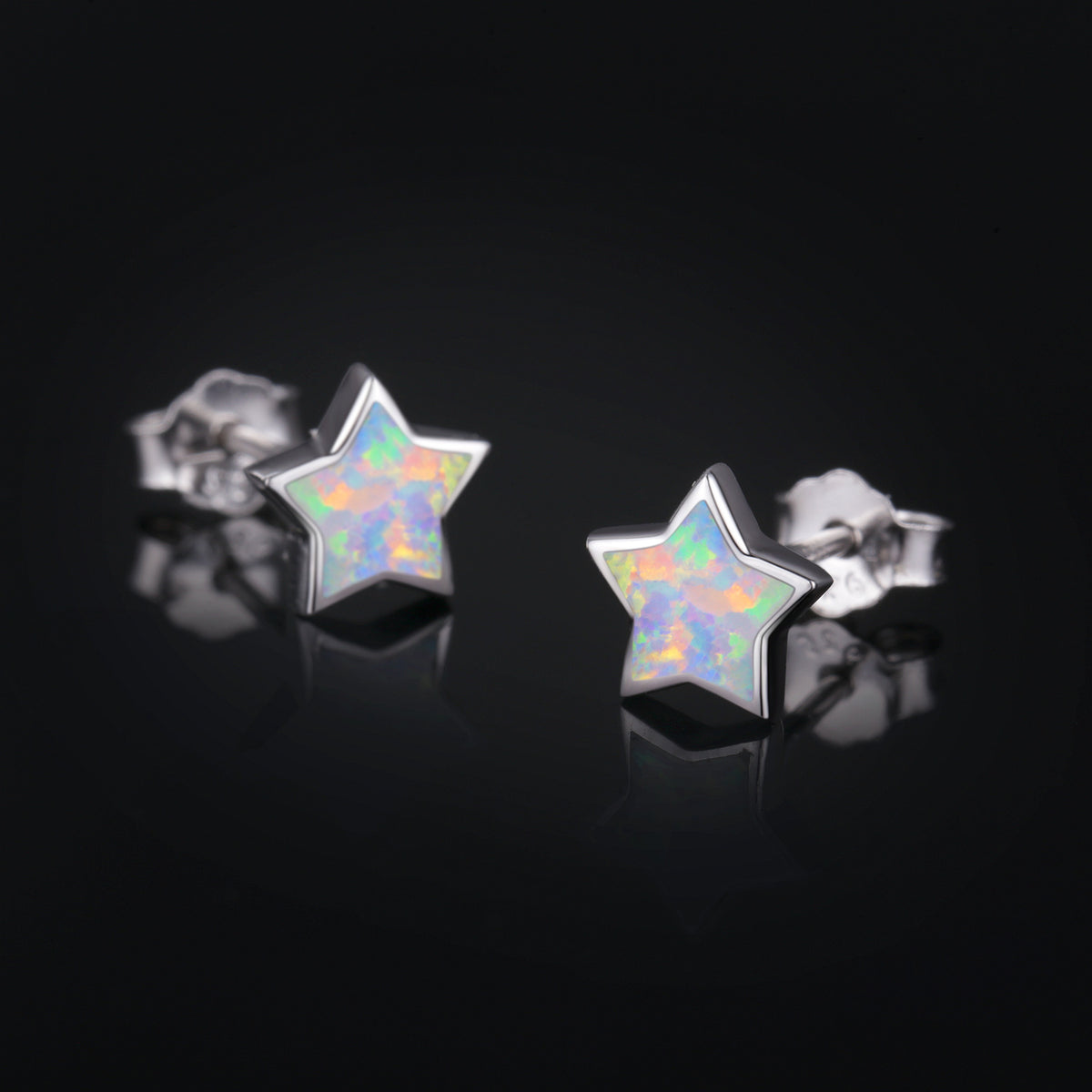Sterling Silver Opal Star Stud Earrings for Women Girls