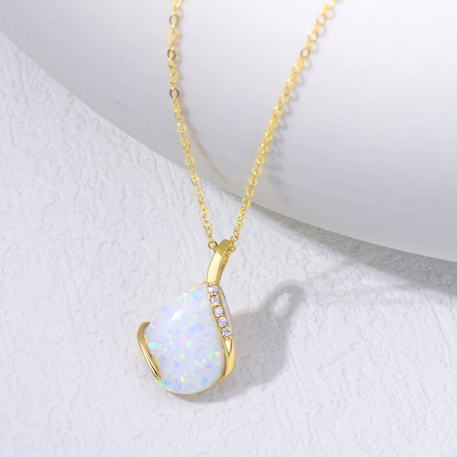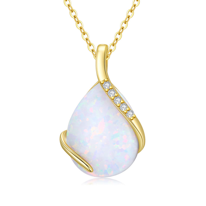 14K Gold Moissanite & Opal Drop Shape Pendant Necklace