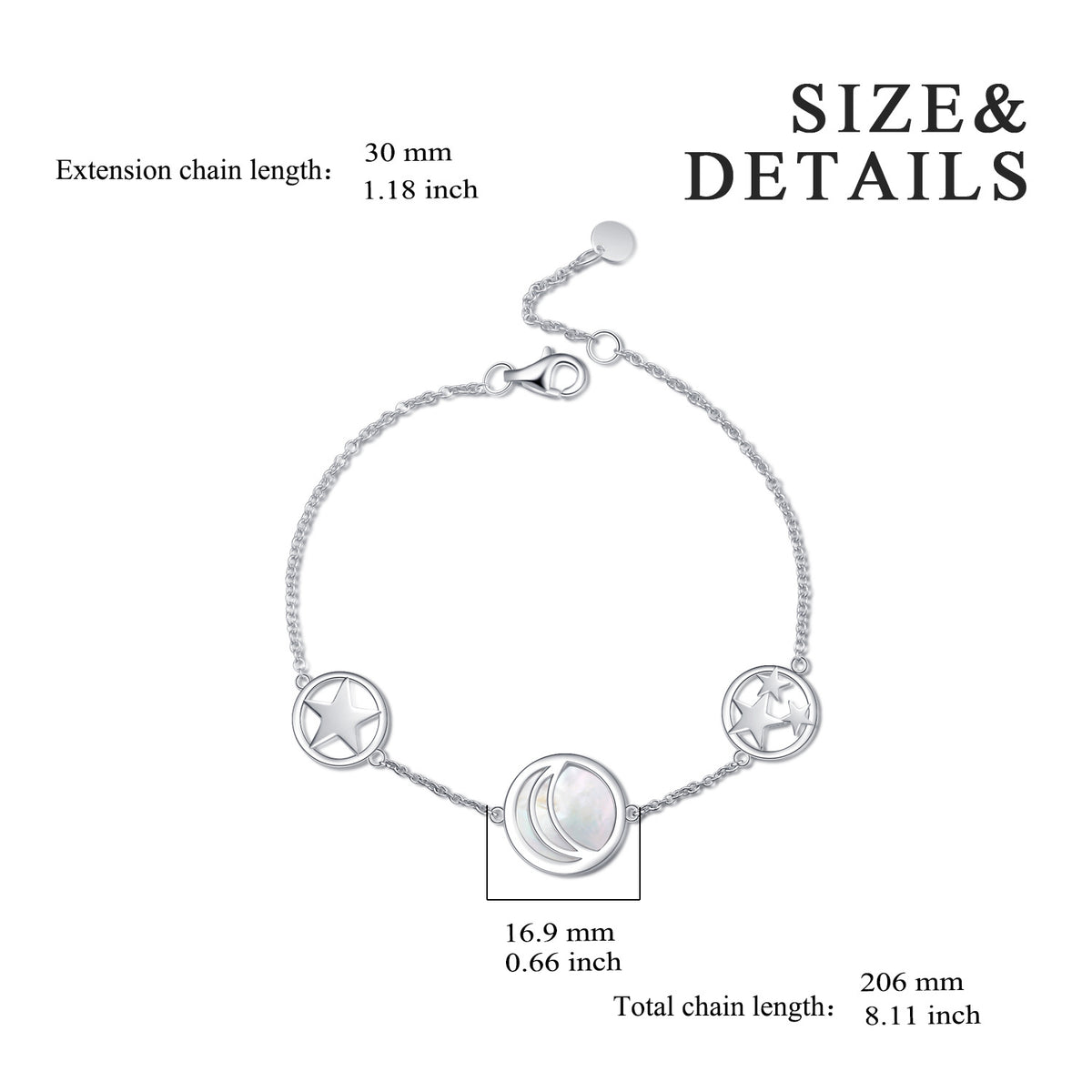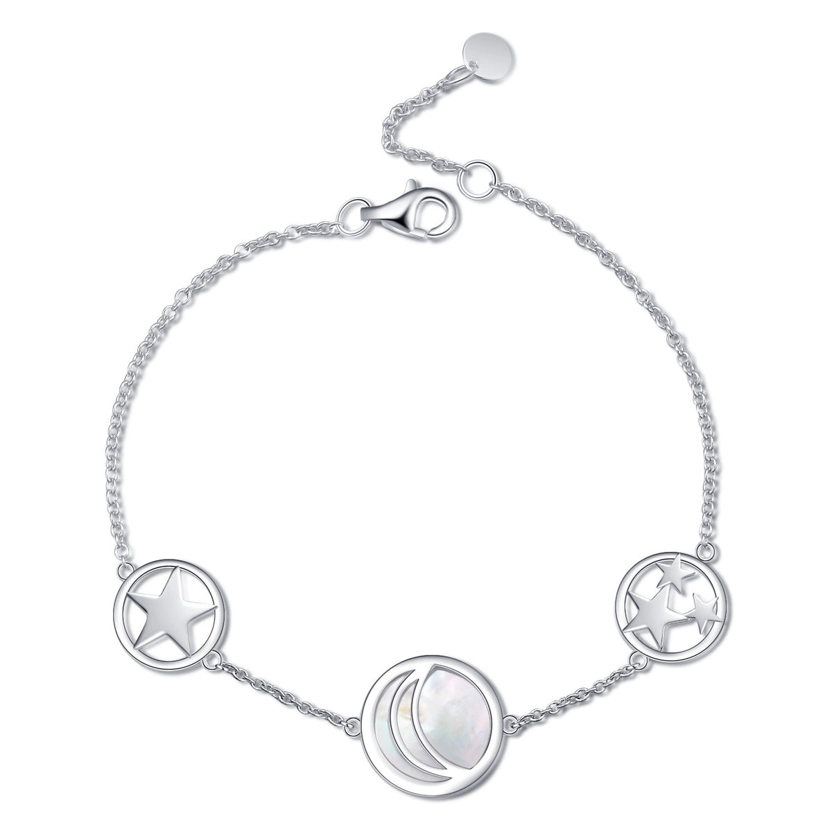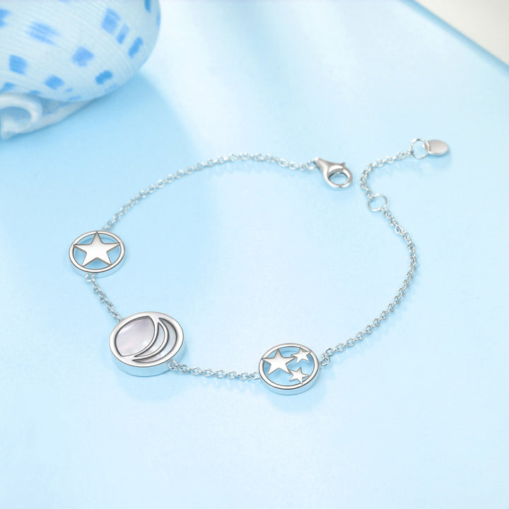 This Round Opal Moon Charm Bracelet by YFN is an exquisite charm bracelet designed for women who cherish mystical charm and classic elegance. The piece features a mesmerizing opal centerpiece that beautifully captures the ethereal beauty of the moon, all set in high-quality sterling silver. The white gold plating adds a luxurious touch, ensuring a brilliant and durable shine. This bracelet is the perfect accessory for both everyday wear and special occasions, appealing to those who love subtle celestial and luminous motifs.