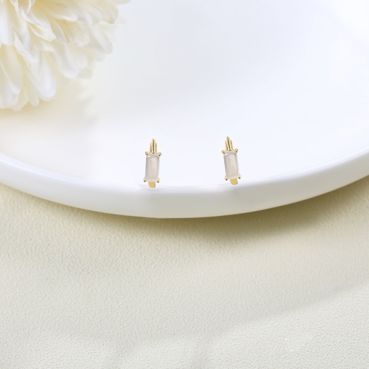 These Hoop Earrings are crafted from 14K Gold, Featuring a Mesmerizing Square-Cut Moonstone.