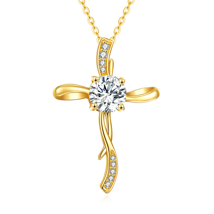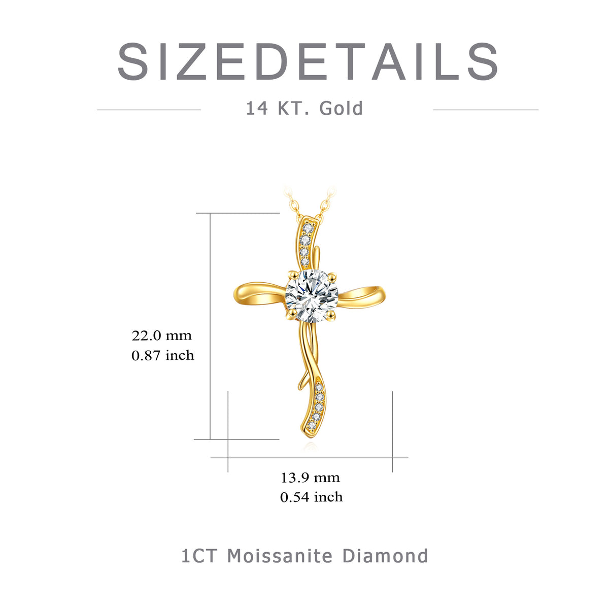 14K Gold Moissanite Cross Knot Pendant Necklace