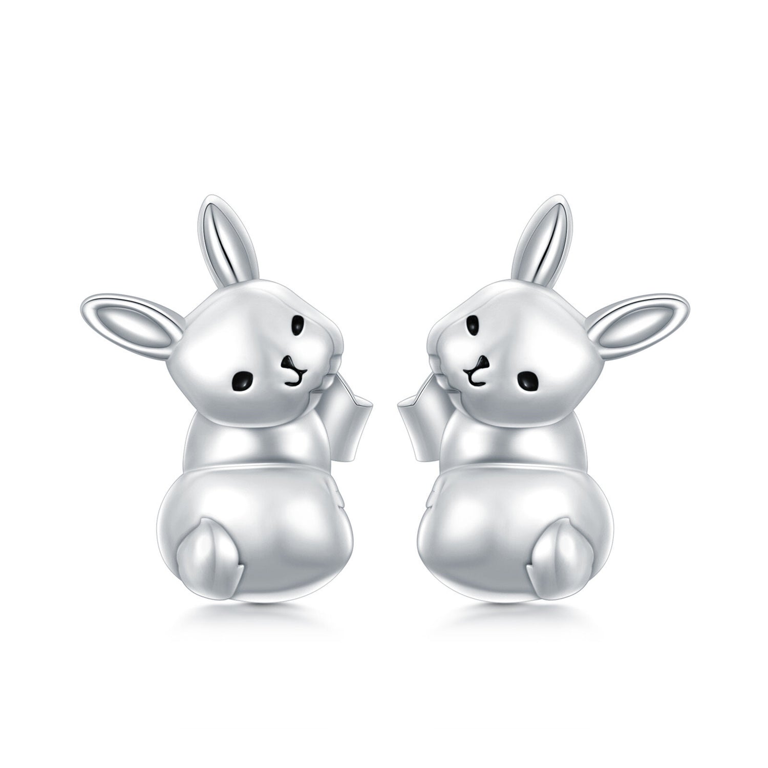 Crafted from Sterling Silver with White Gold Plating, featuring Stud Earrings with a Rabbit Design.