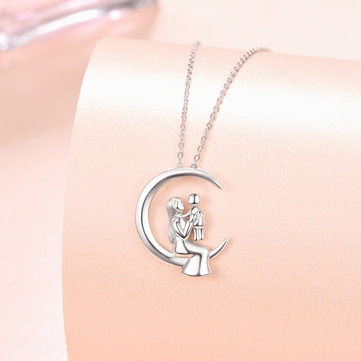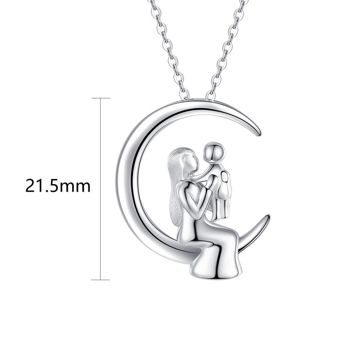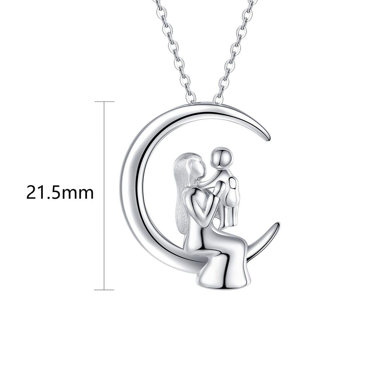 Sterling Silver Mother Daughter And Moon Pendant Necklace For Mom