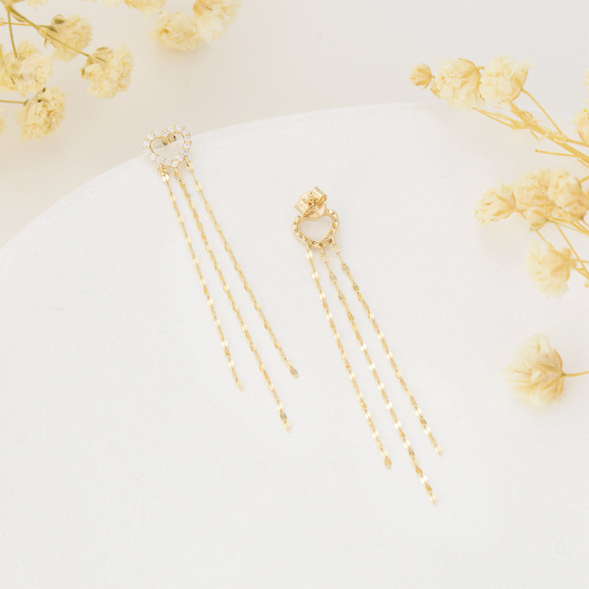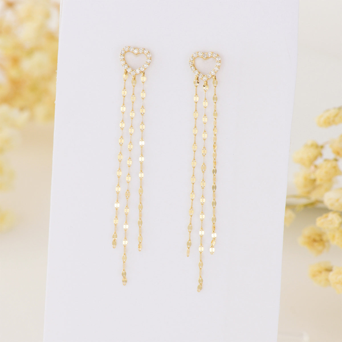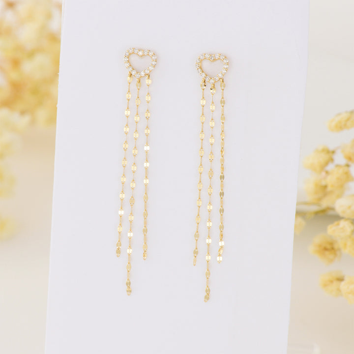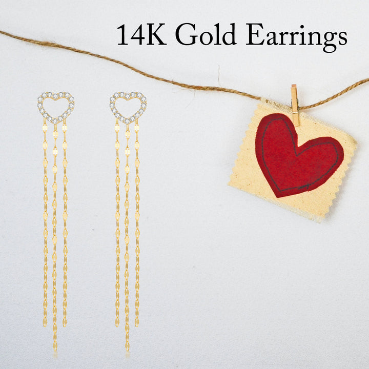 14K Gold Moissanite Heart Drop Earrings