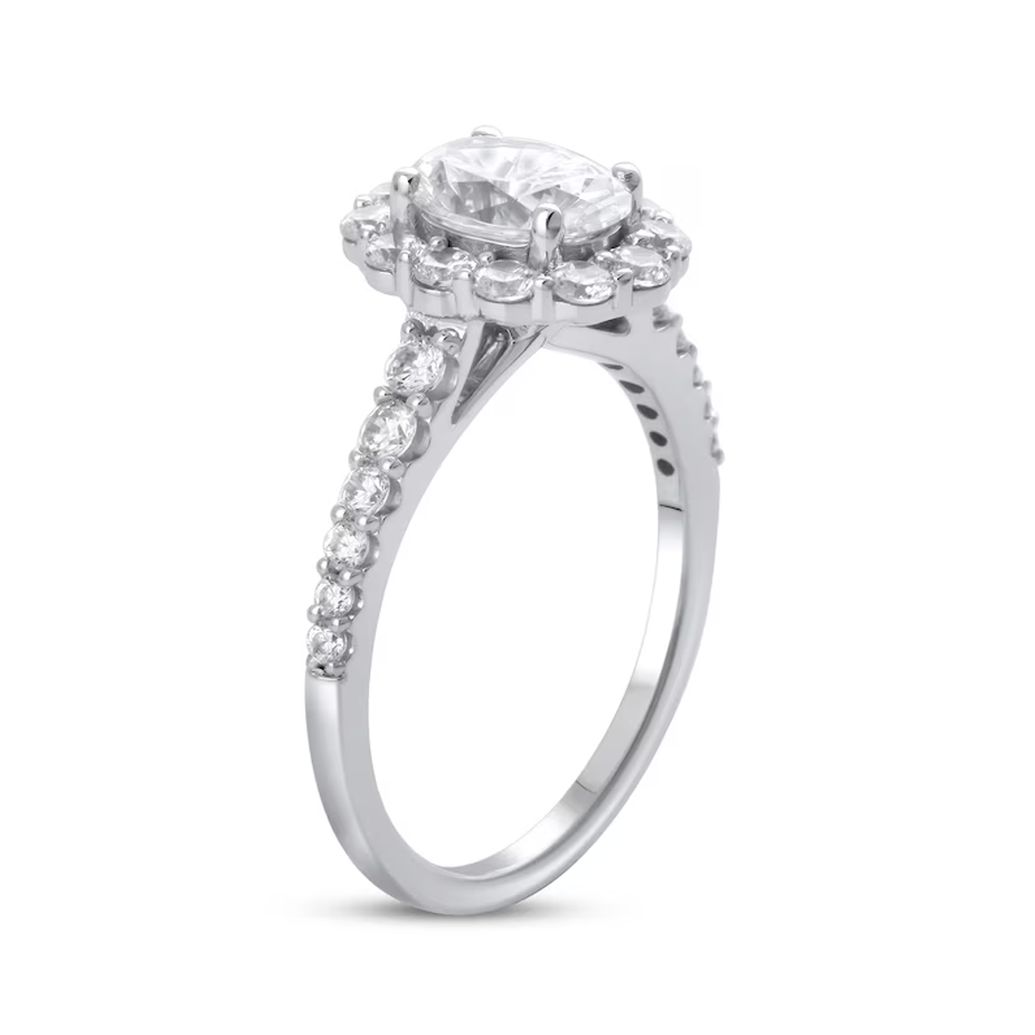 Crafted in 14K white gold with IGI-certified lab-created oval diamond (D color, VVS1–VS1 clarity, 3EX ratings). Center stones 0.5–3 CT; total 1–3.5 CT T.W.