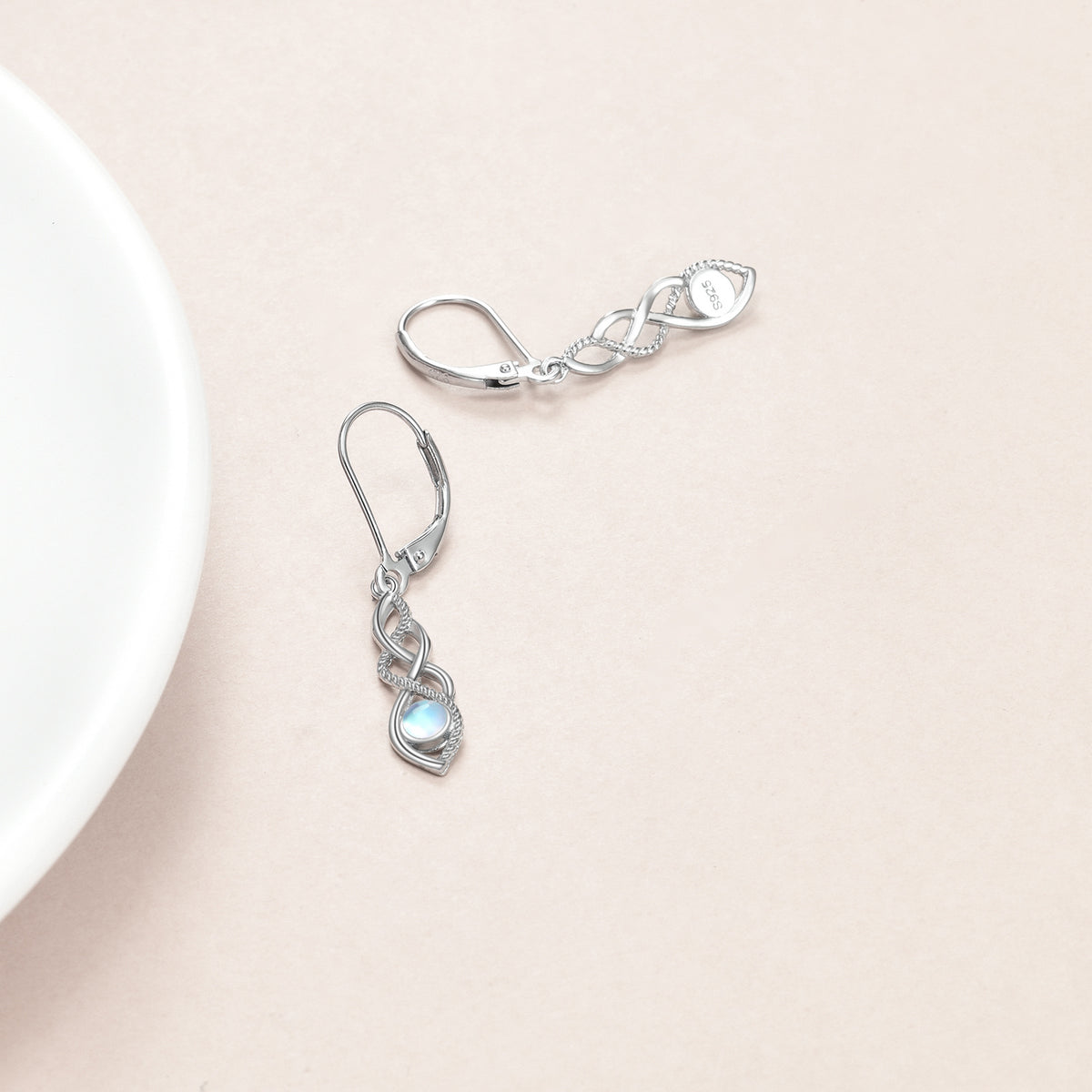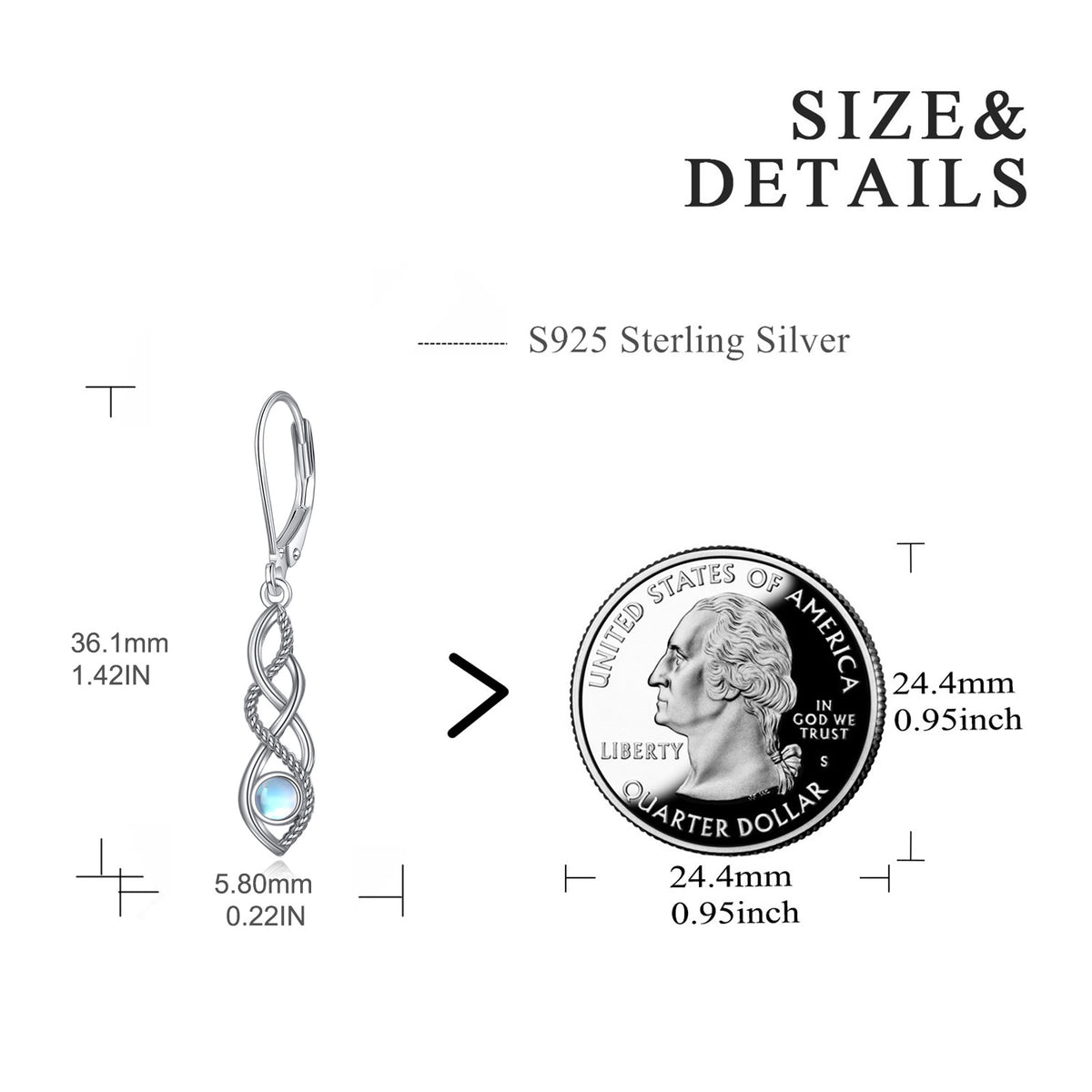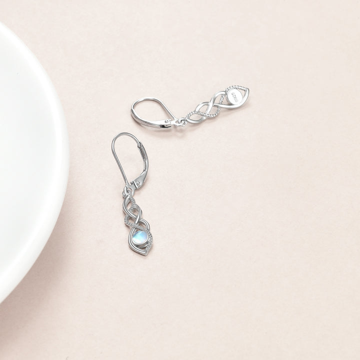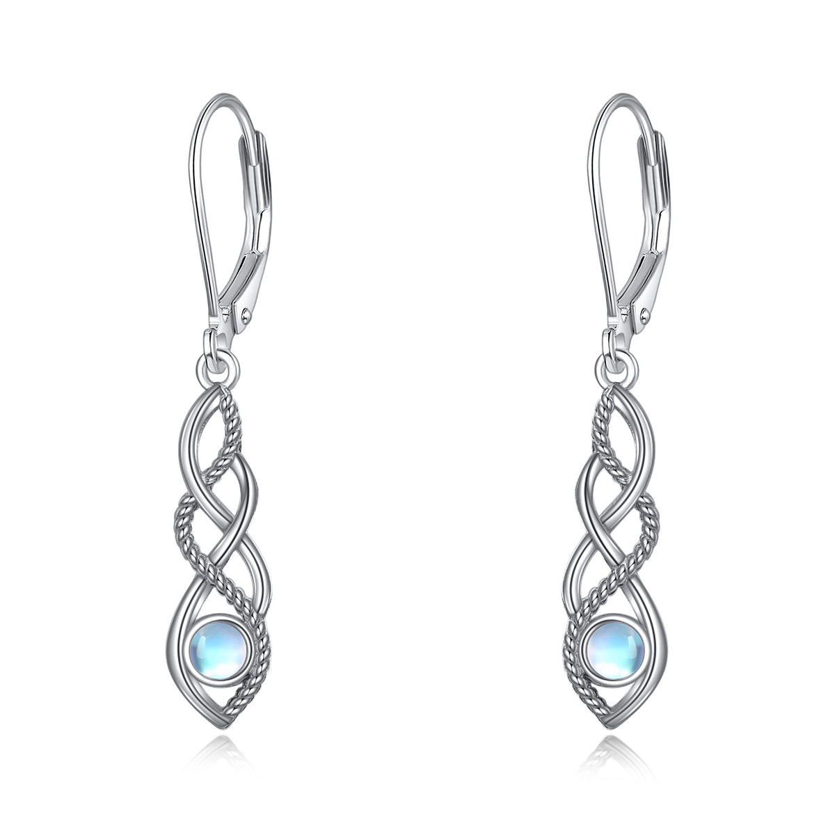 Sterling Silver Circular Shaped Moonstone Celtic Knot Lever-back Earrings