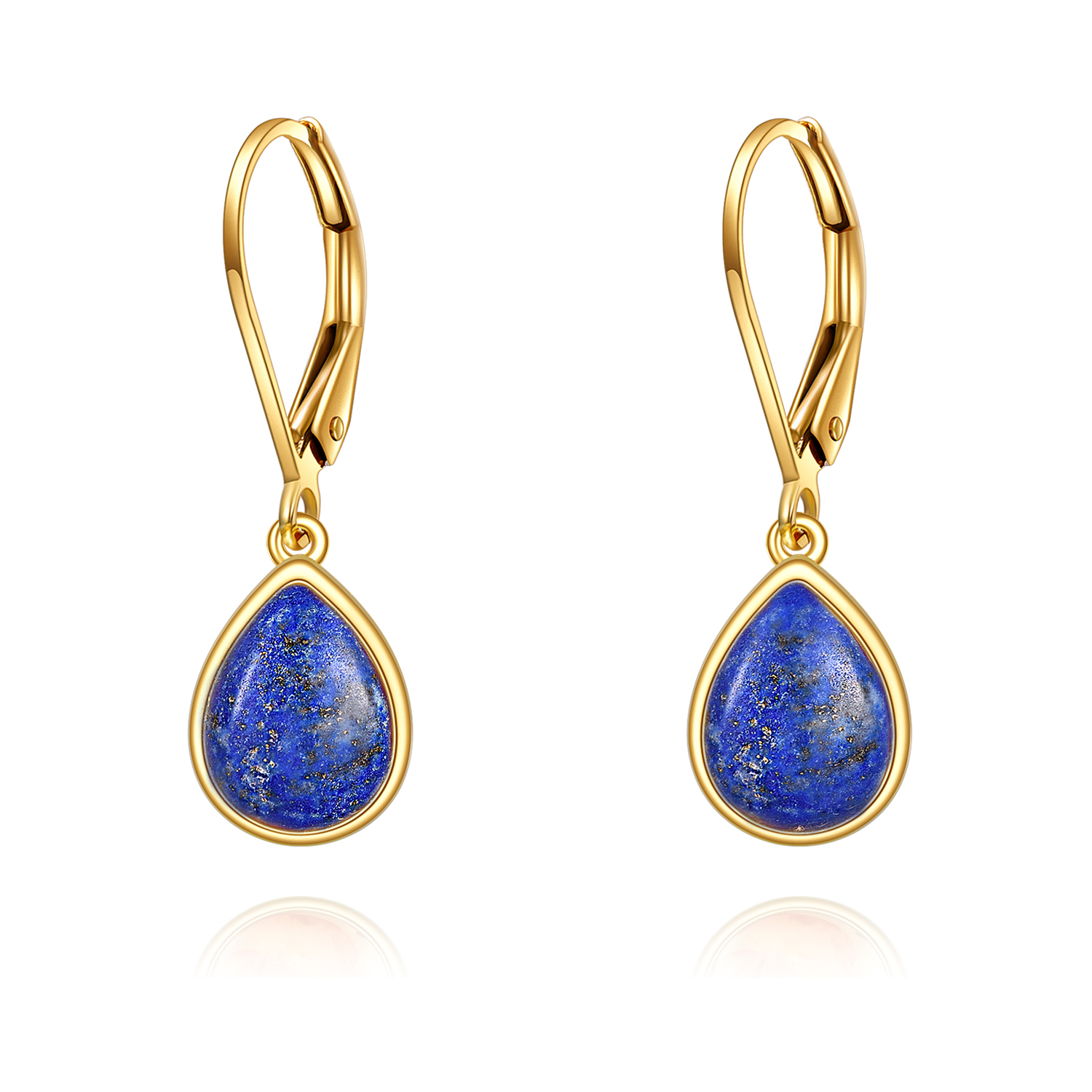 Handcrafted drop earrings made from 14K solid gold. Features Lapis Lazuli stones in a drop shape.