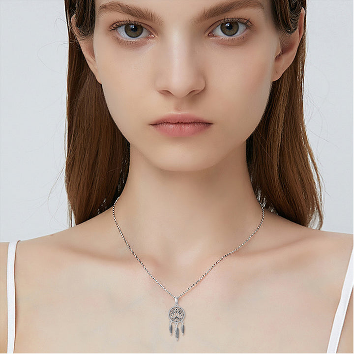 This Sterling Silver Dream Catcher Pendant Necklace by YFN channels mystical charm in a white gold-plated dream catcher design crafted without gemstones. Made for women who appreciate symbolic jewelry, it offers a delicate and meaningful accent suitable for any outfit.