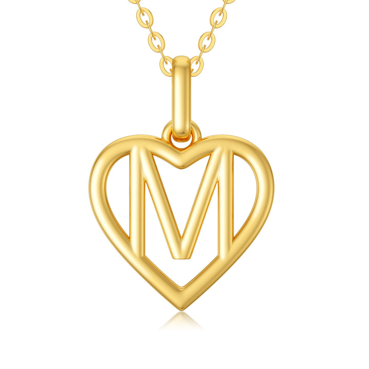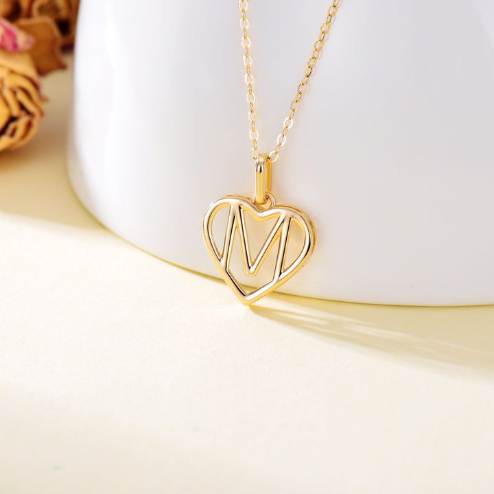 14K Gold Heart Pendant Necklace with Initial Letter M