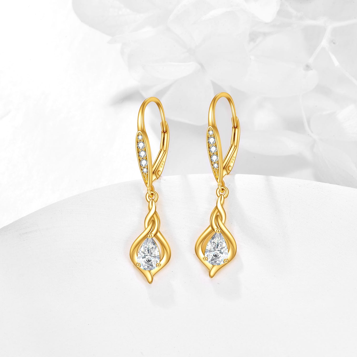 Crafted from solid 14K Yellow Gold. These are Circular Lever-back Earrings set with Moissanite stones.