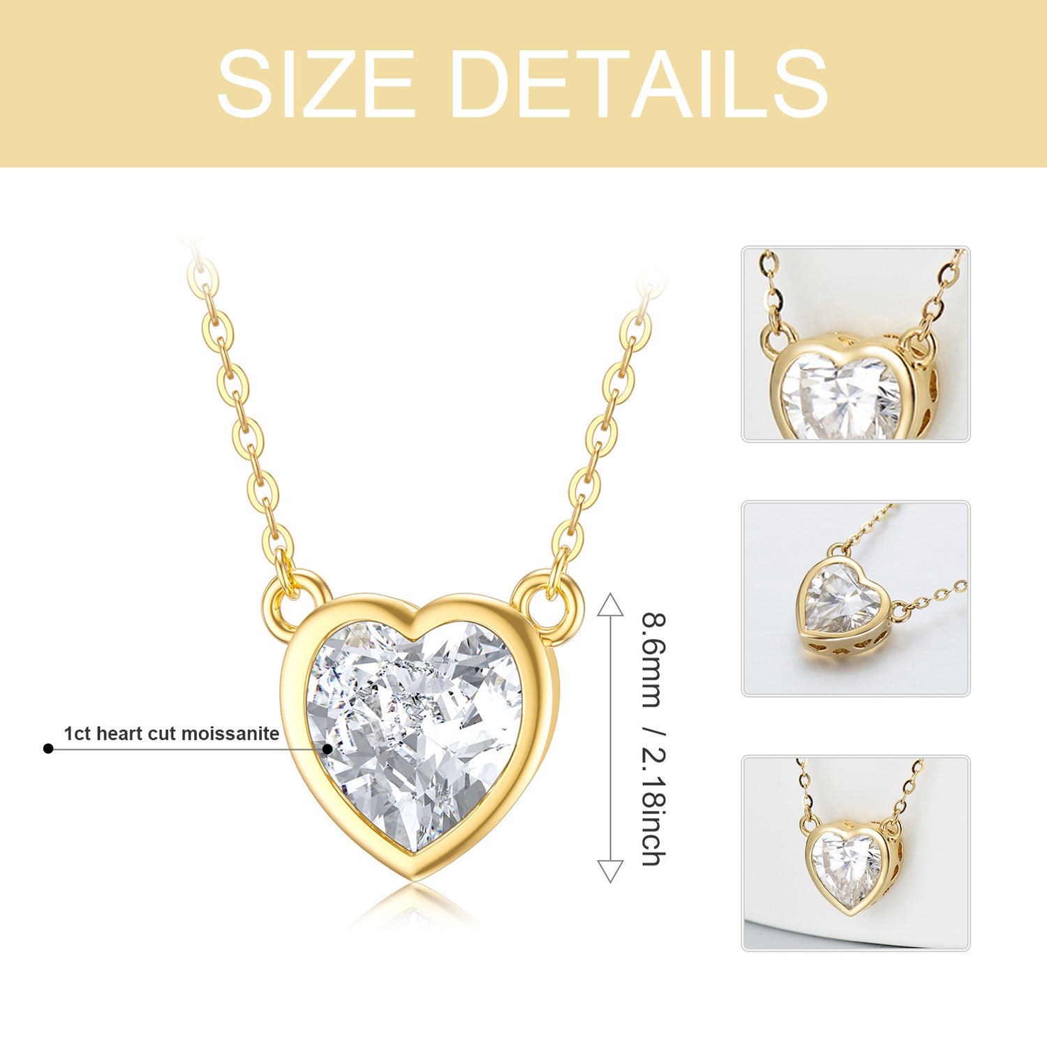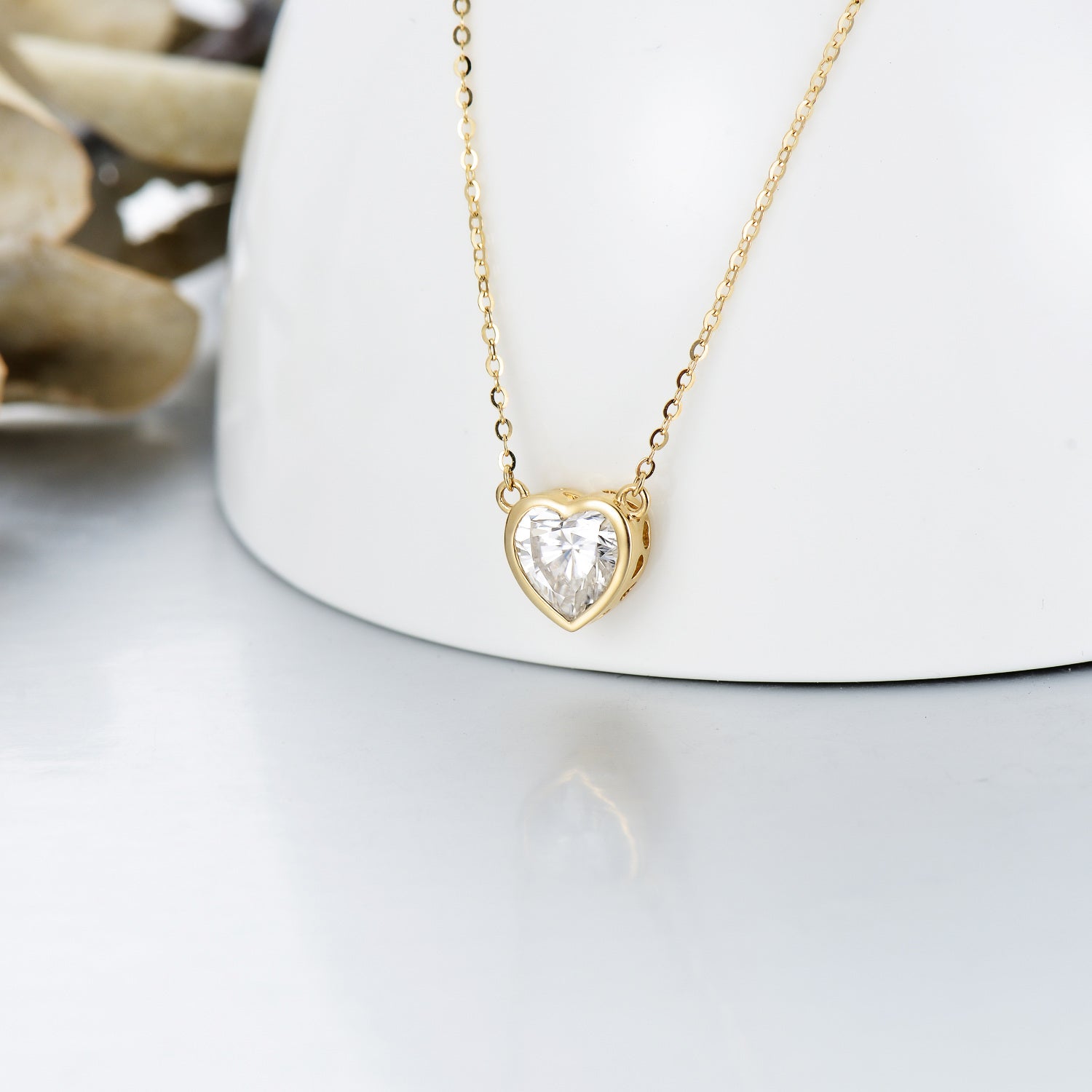 14K Gold Moissanite Heart Pendant Necklace