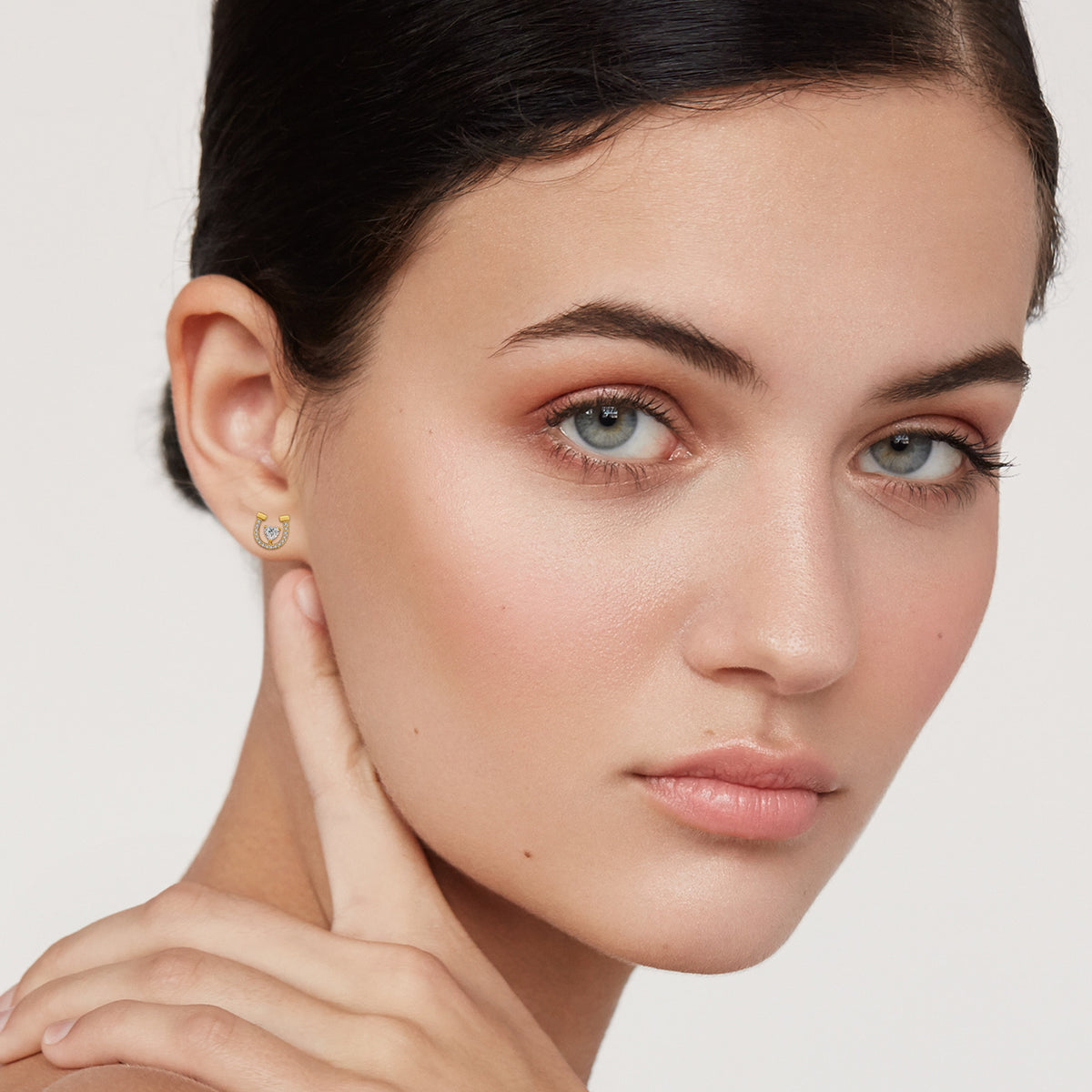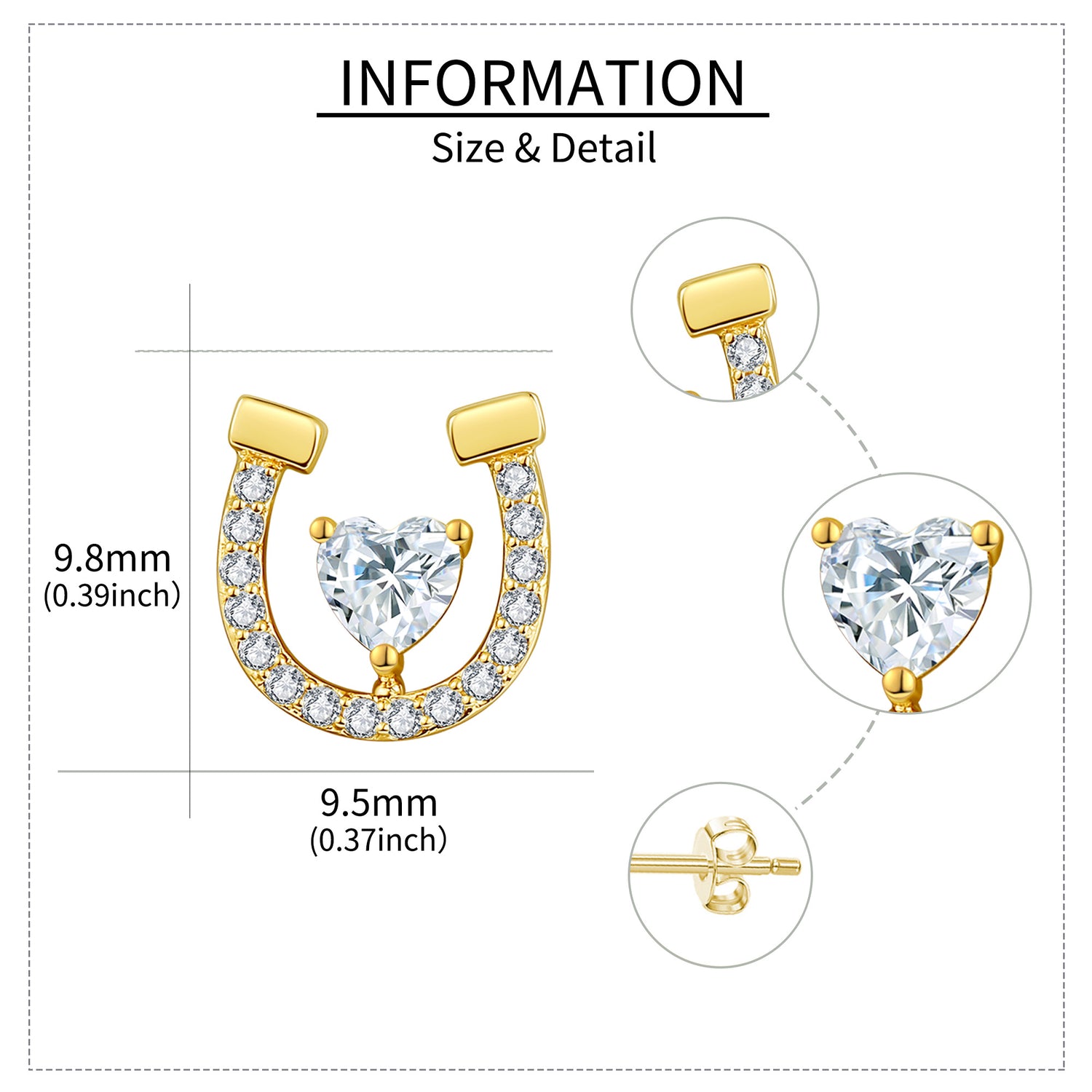 These 14K Gold Horseshoe Stud Earrings by YFN embody luck and sparkle through their elegant horseshoe design, adorned with brilliant Cubic Zirconia. Crafted in 14K gold, they bring a radiant touch to any look and make a meaningful gift for the stylish woman.