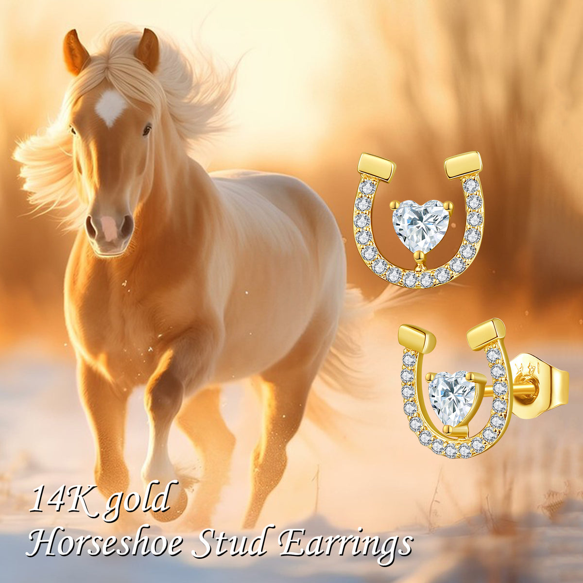 14K Gold Cubic Zirconia Horseshoe Stud Earrings