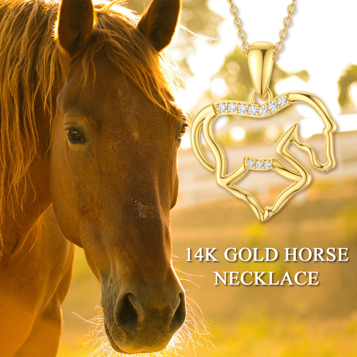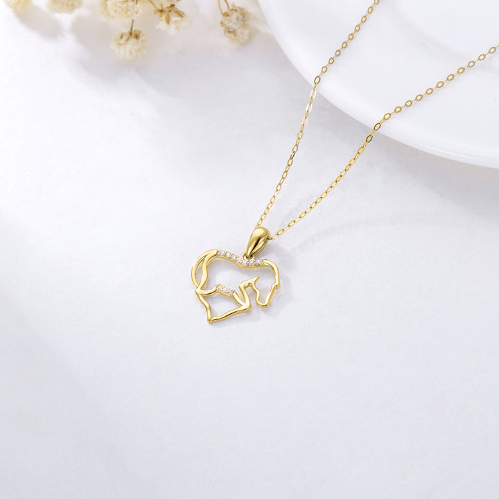 14K Gold Cubic Zirconia Horse Pendant Necklace