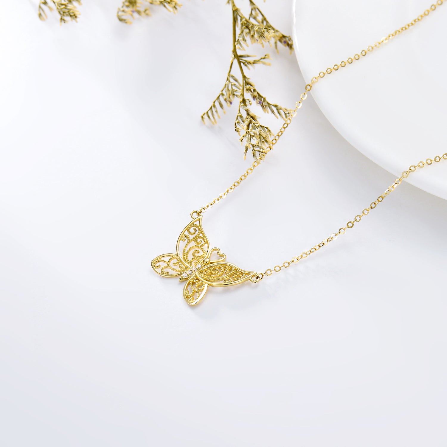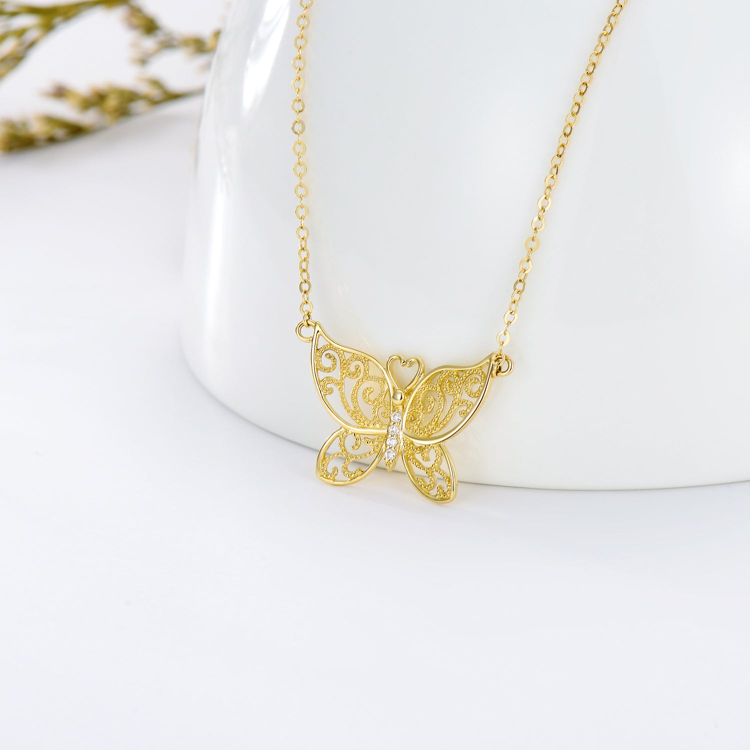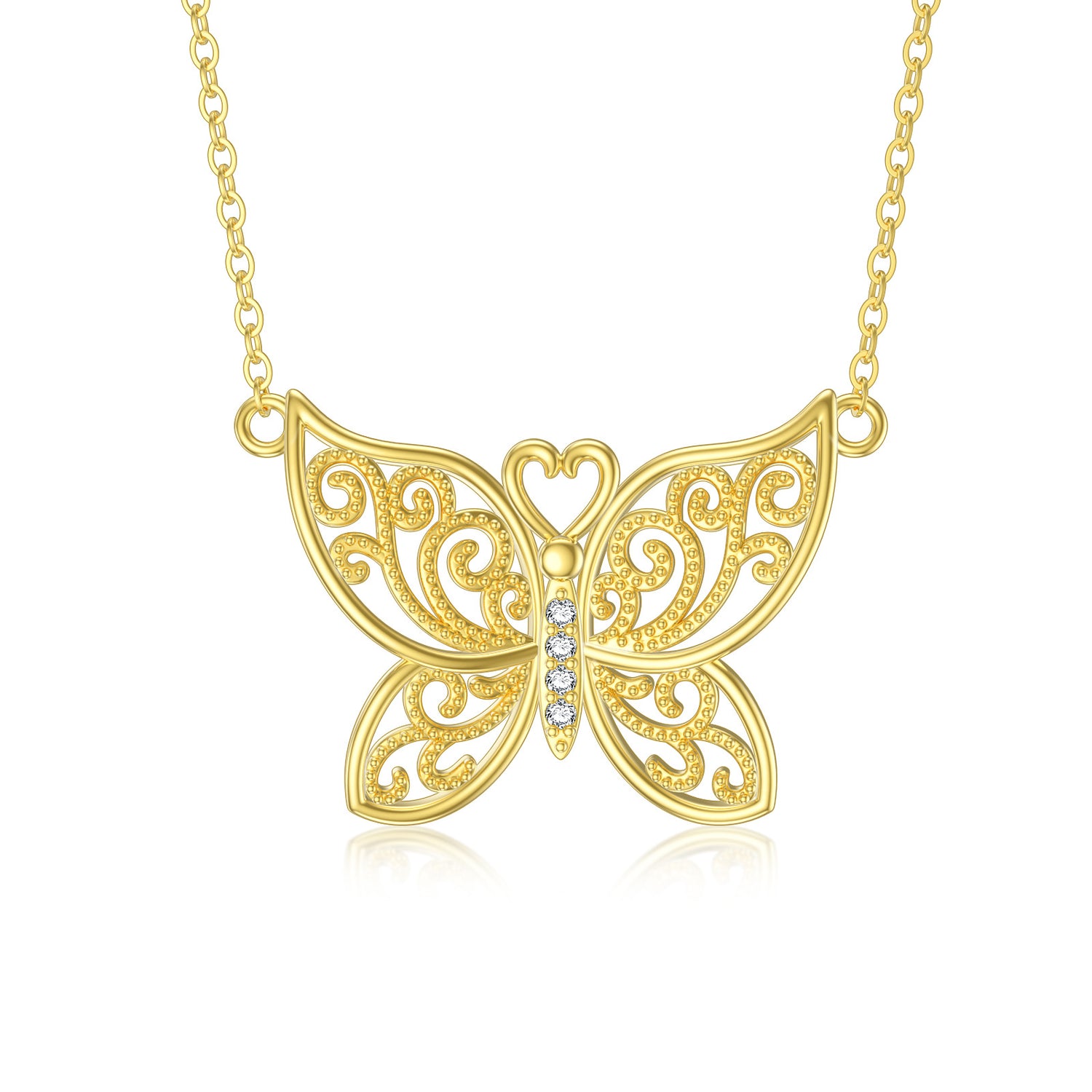 This 14K Gold Cubic Zirconia Butterfly Pendant Necklace by YFN is a must-have for any woman's jewelry collection. This exquisite 14K Gold Pendant Necklace features a beautifully designed Butterfly Charm adorned with shimmering Cubic Zirconia stones, offering a touch of sparkle and sophistication for any occasion.