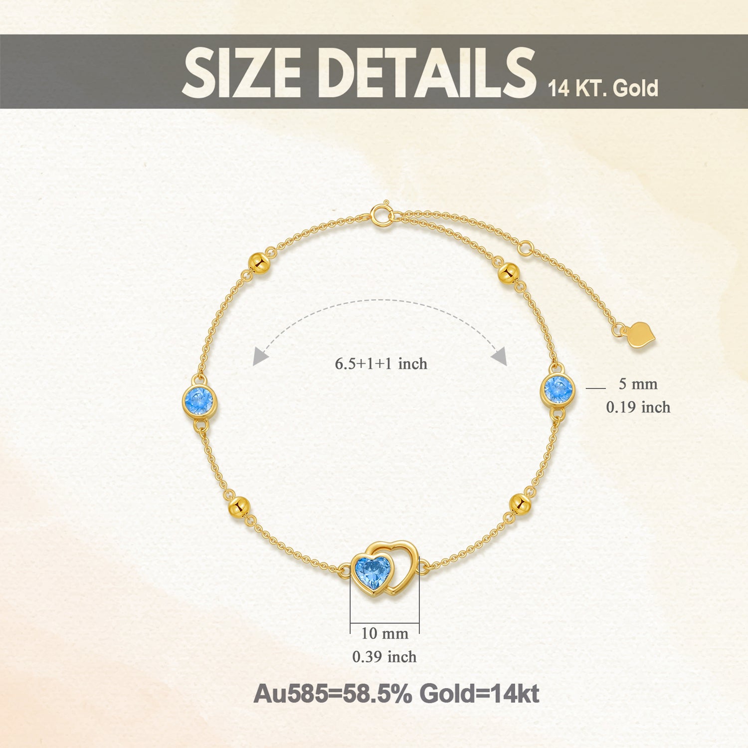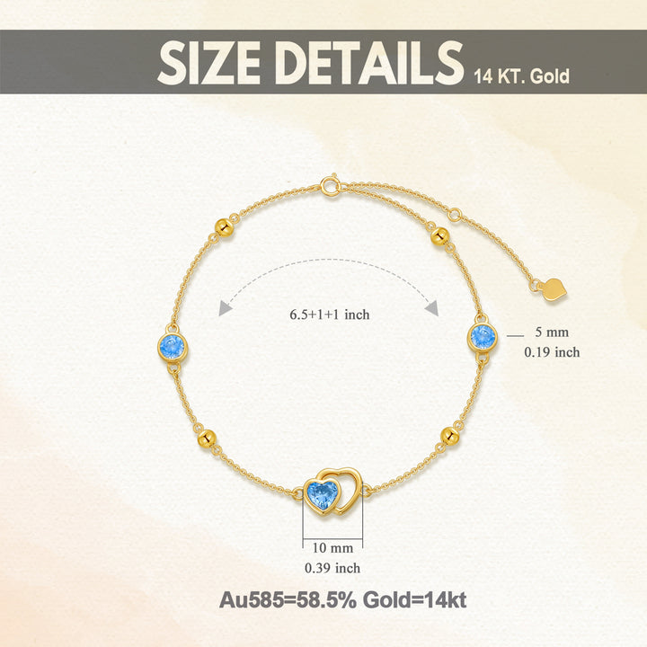 14K Gold Cubic Zirconia Heart Charm Bracelet