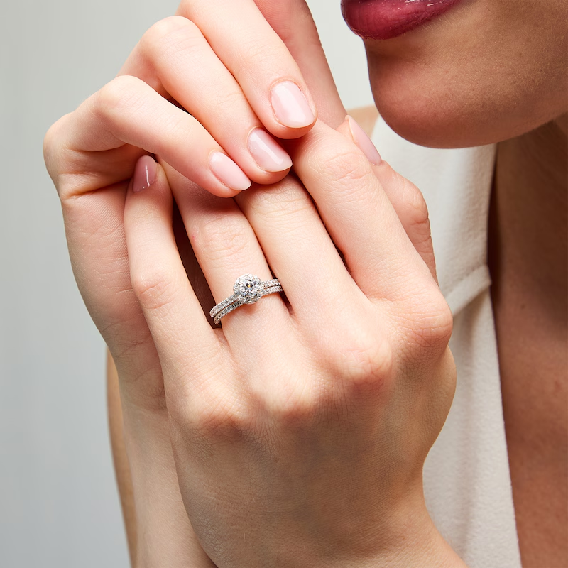 This Round Cut Lab Created Diamond Wedding Ring by YFN is an exquisite piece that embodies elegance and personalization for couples. Crafted from high-quality 14K White Gold, this Wedding Ring/Bridal Set features a stunning Round-Shaped Lab-Created Diamond (Total Weight up to 3.5 CT, D Color, VVS1-VS1 Clarity) in a halo of baguette diamonds. IGI certified with 3EX craftsmanship, the option for personalized engraving makes it a timeless, brilliant symbol of love.
