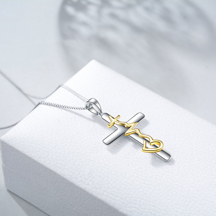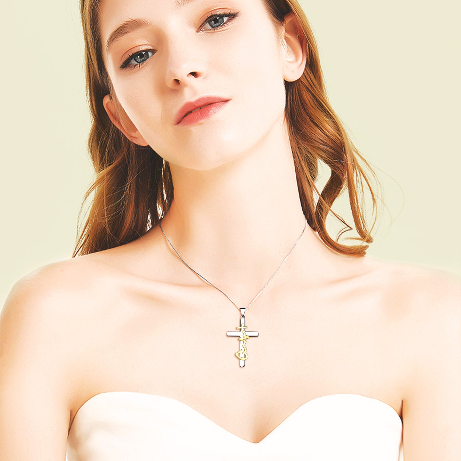 Sterling Silver with Yellow Gold Plated Cross Pendant Necklace