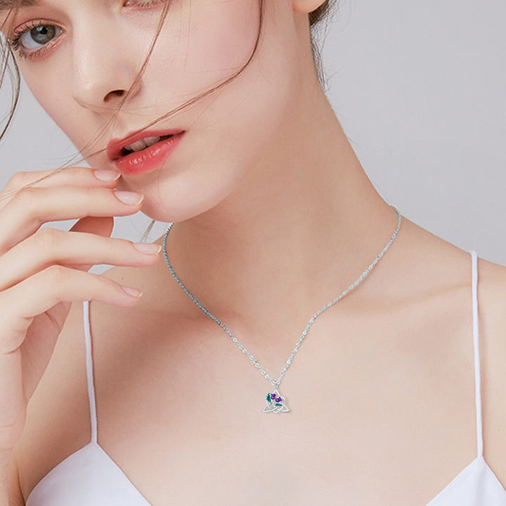 This Sterling Silver Thistle & Celtic Knot Pendant Necklace by YFN offers timeless elegance and heritage for women. Crafted from premium sterling silver, this no-stone Pendant Necklace features a delicate Thistle adorned with intricate Celtic Knot Designs. The beautiful White Gold Plating ensures a radiant, tarnish-resistant shine, perfect for everyday wear.