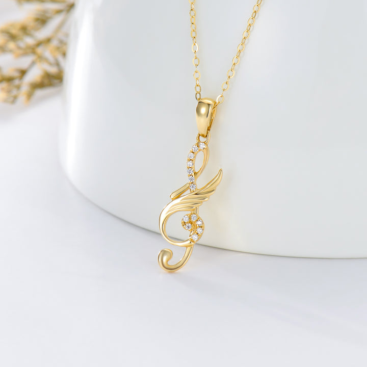 14K Gold Cubic Zirconia Music Symbol Pendant Necklace