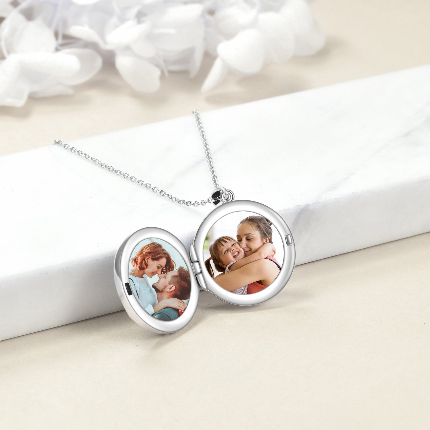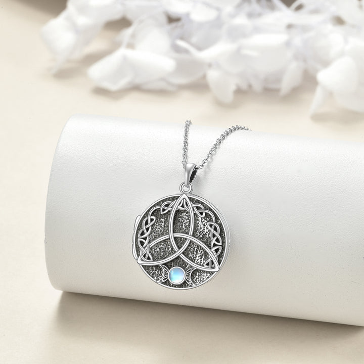 Sterling Silver Circular Shaped Moonstone Celtic Knot Personalized Photo Locket Necklace