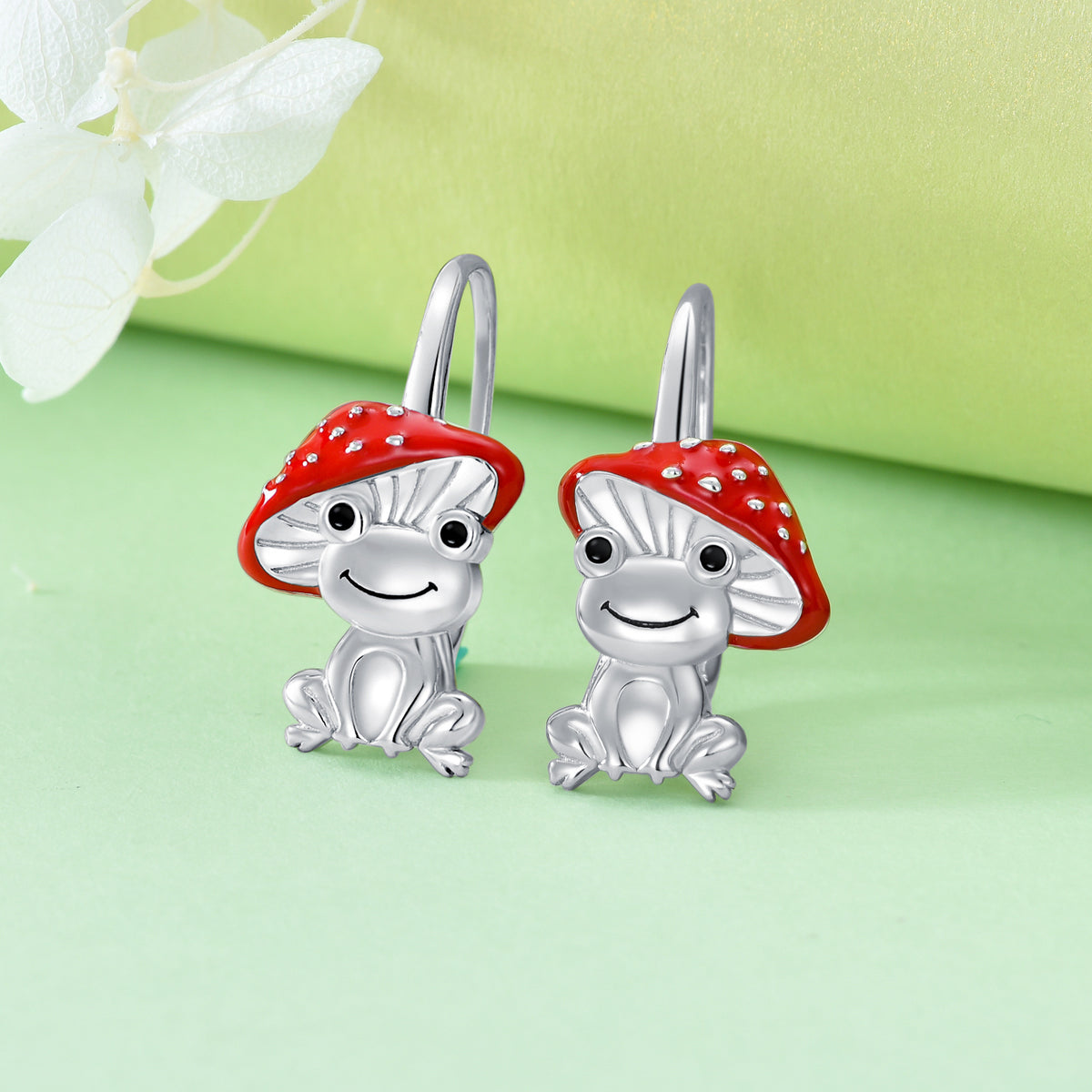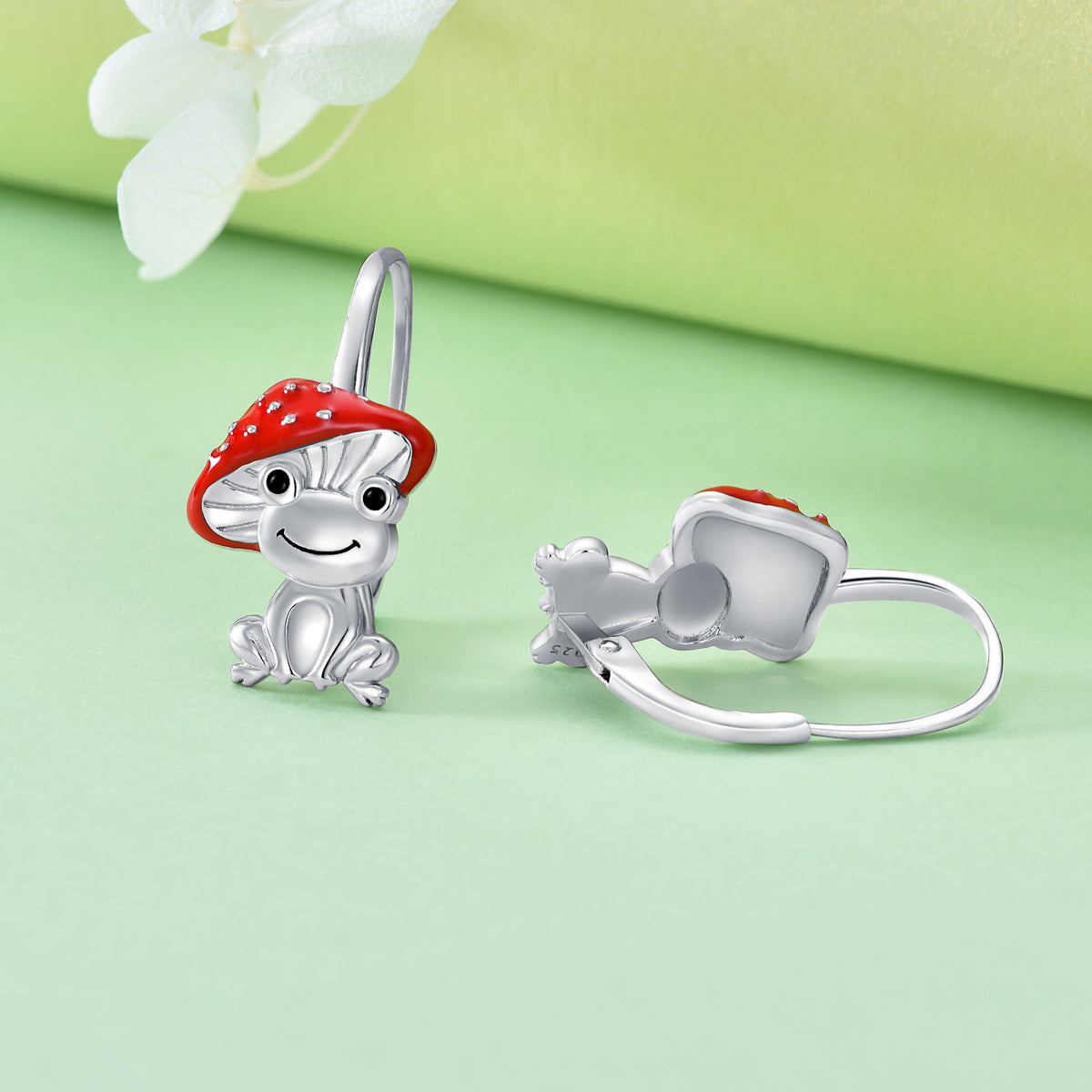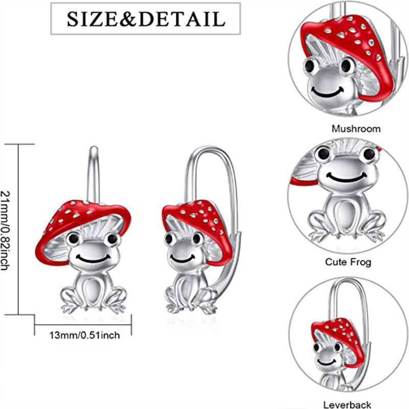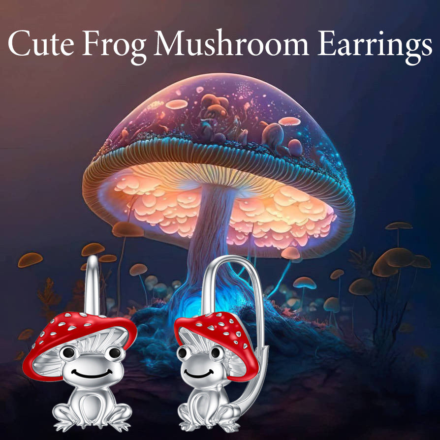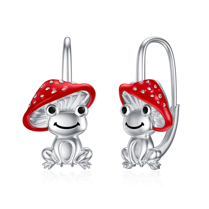 Sterling Silver Frog & Mushroom Lever-back Earrings