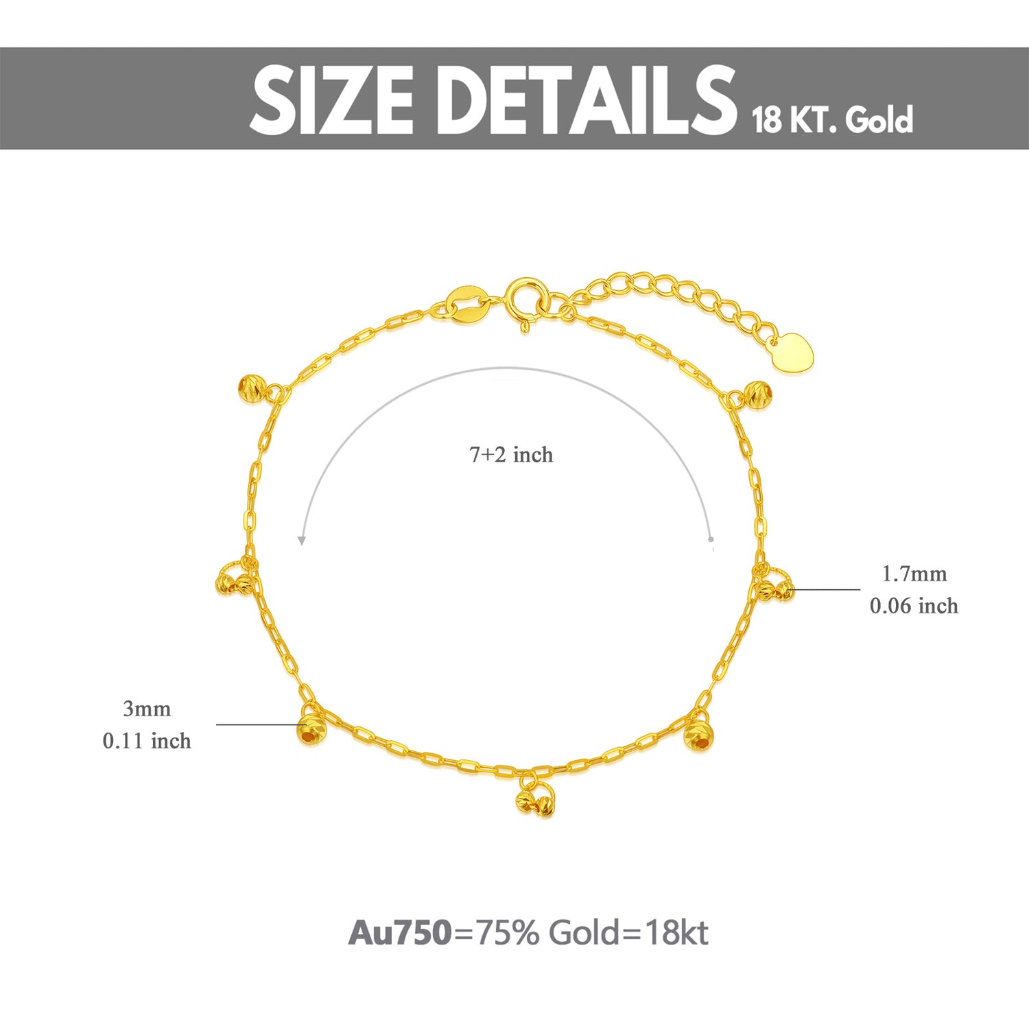 18K Gold Ball Charm Bracelet