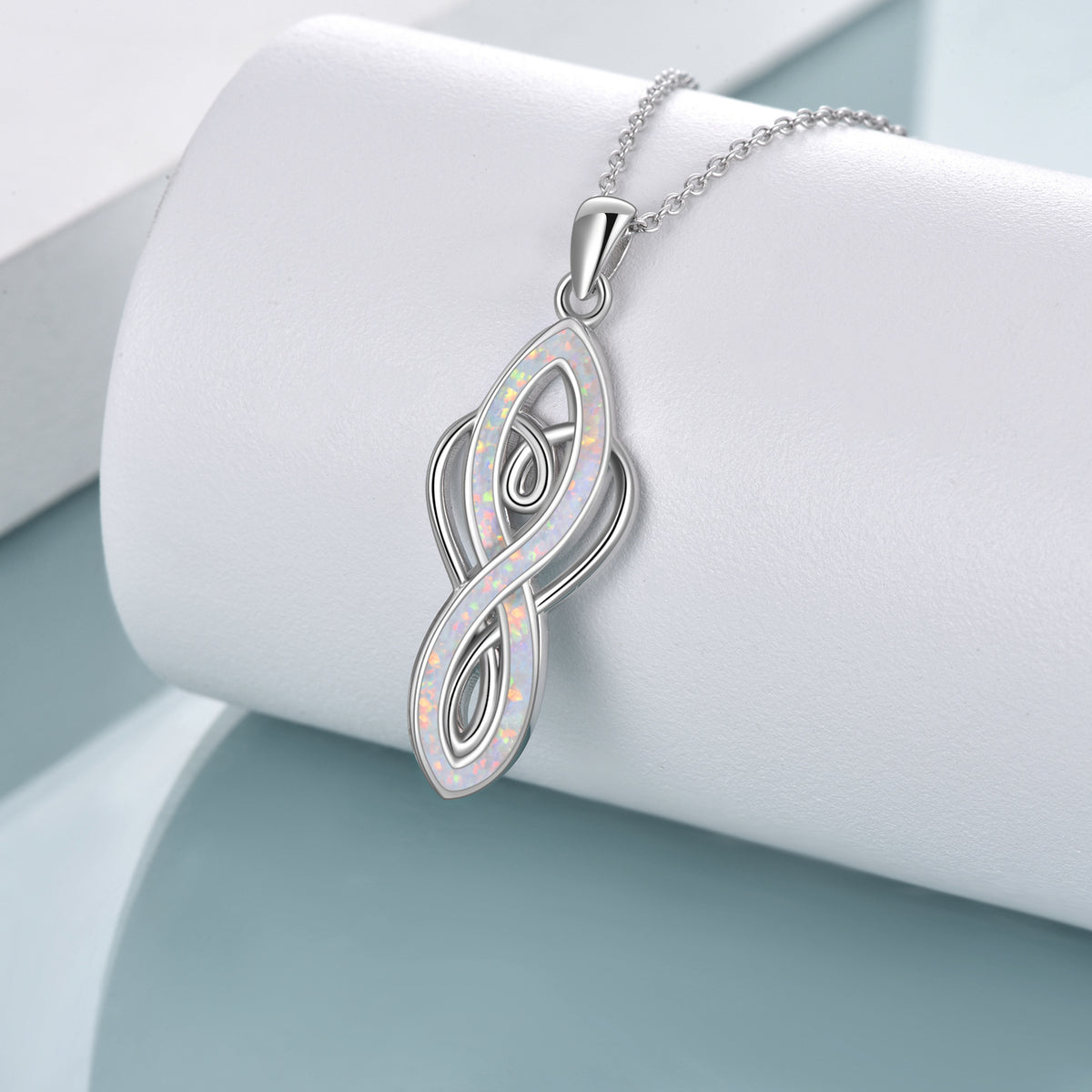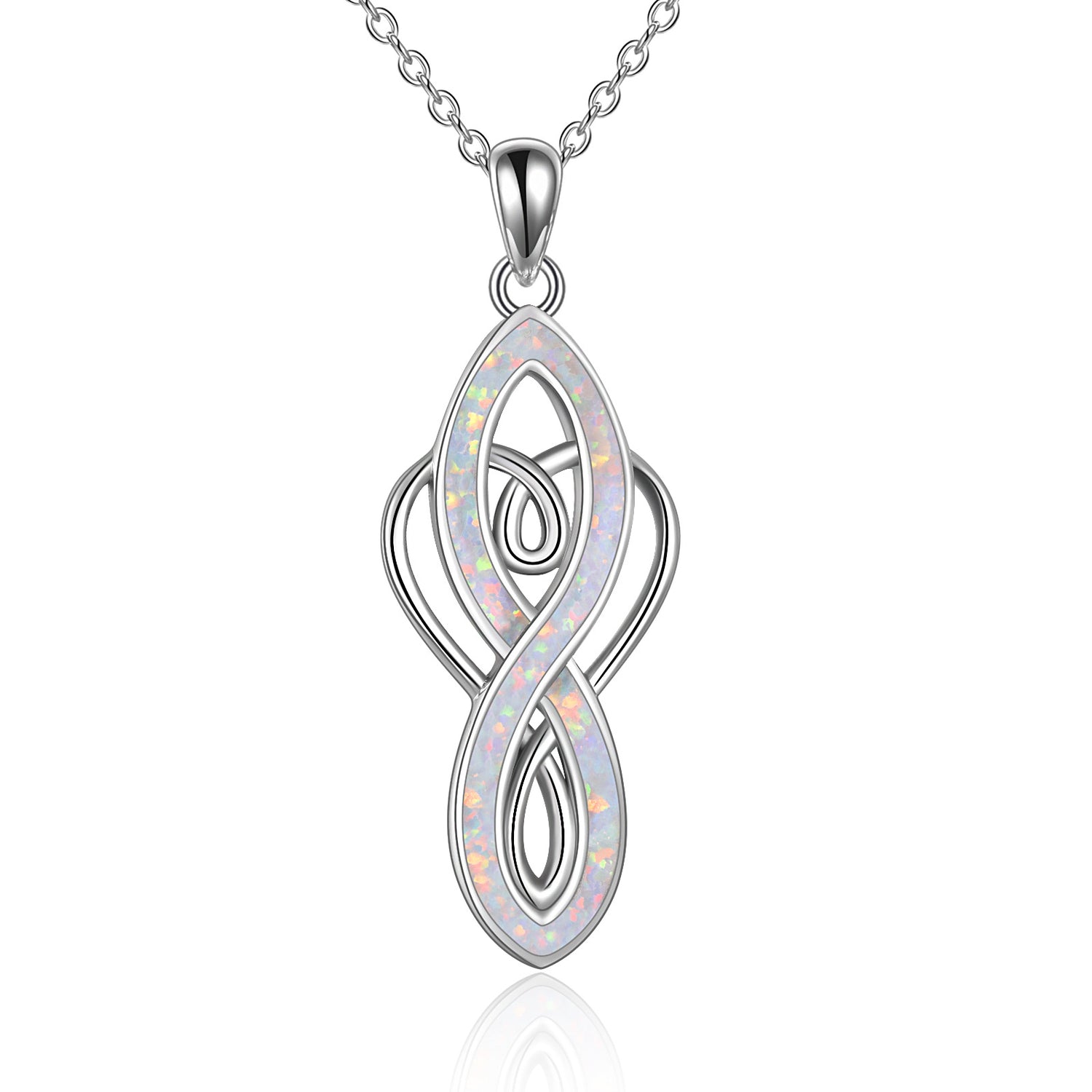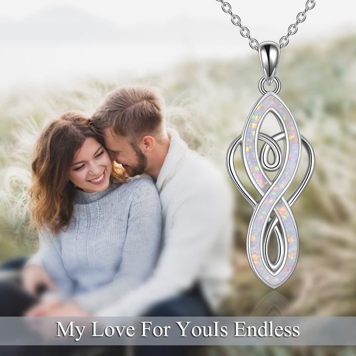Sterling Silver Opal Heart Infinity Symbol Pendant Necklace for Women