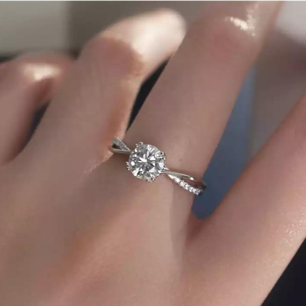 18K White Gold 1CT Round Cut Moissanite Twisted Infinity Engagement Ring
