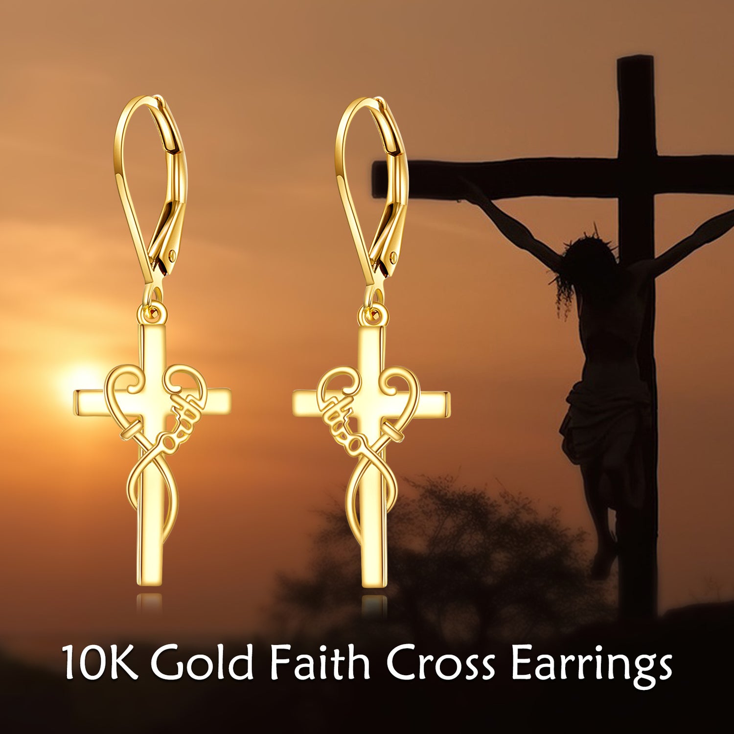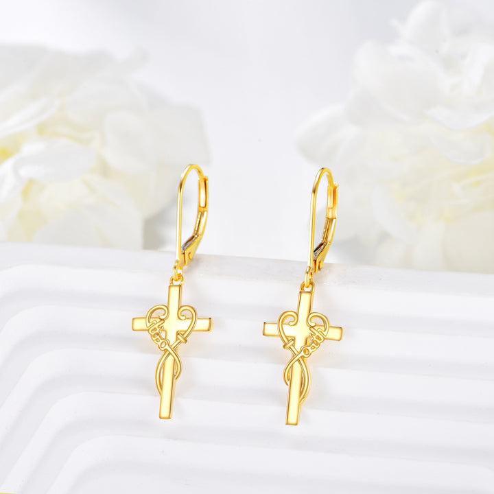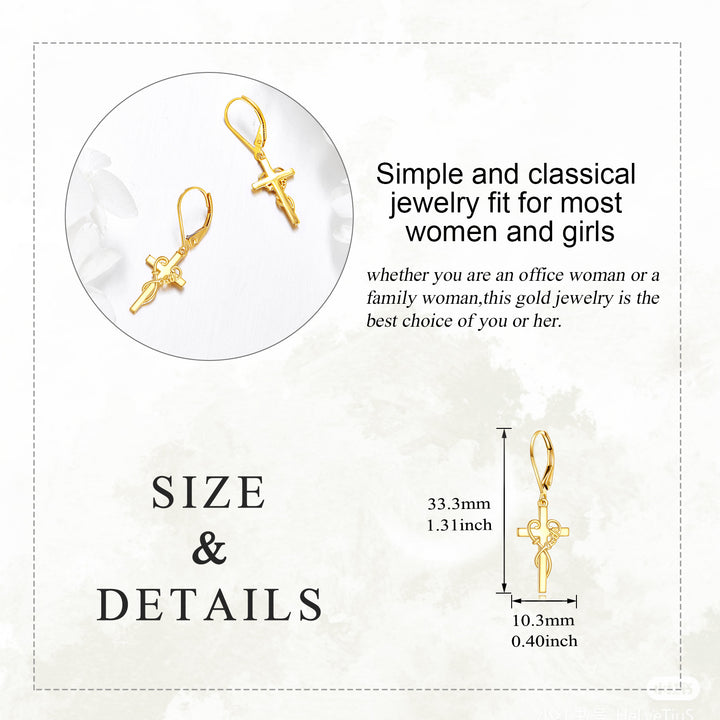 10K Gold Cross Drop Earrings