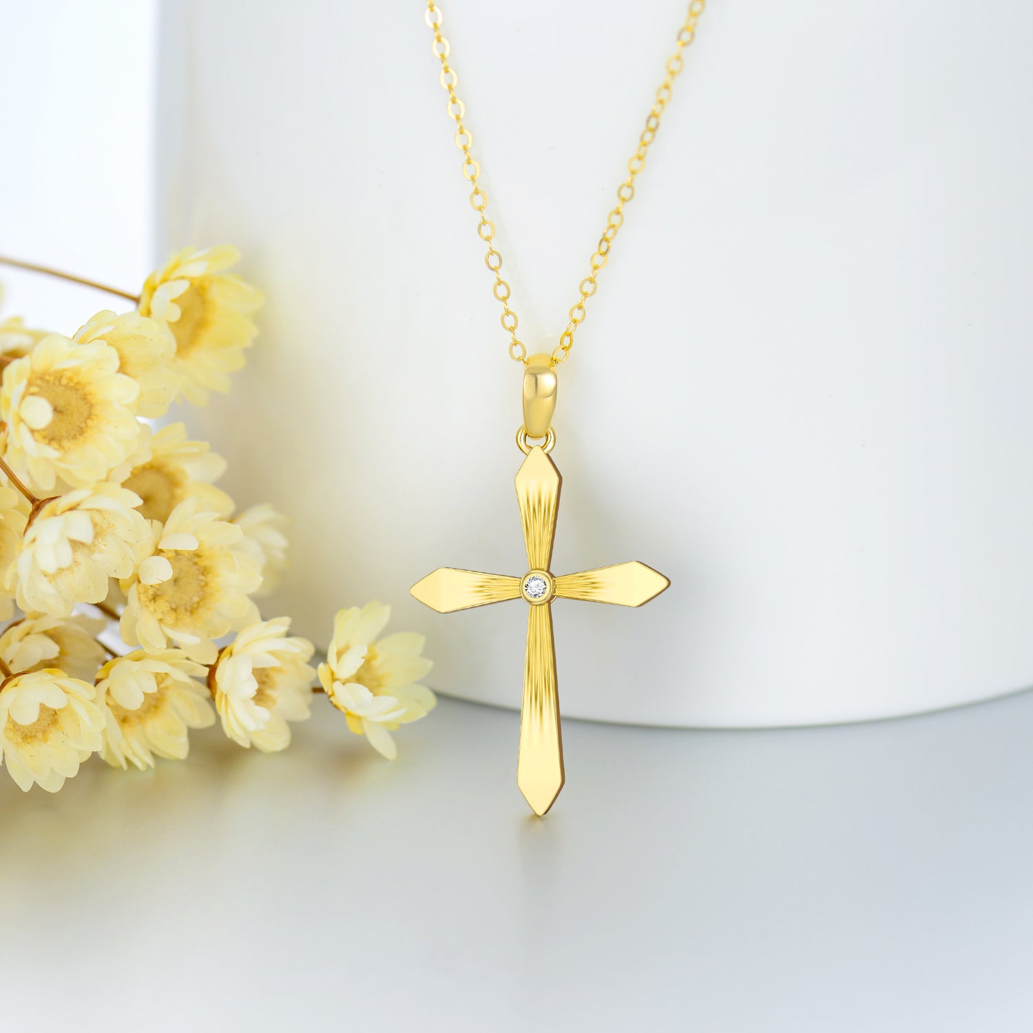 This 14K Gold Personalized Birthstone Cross Necklace by YFN offers a perfect blend of luxury, faith, and personalization. This unisex Pendant Necklace, crafted from high-quality 14K Gold, features a classic Cross design adorned with dazzling Cubic Zirconia. The option to customize with a Personalized Birthstone transforms it into a unique keepsake. Whether for men or women, this necklace is a versatile accessory that provides a beautiful expression of style, sentiment, and individual celebration.