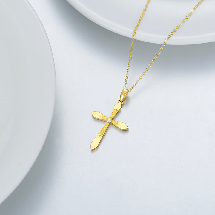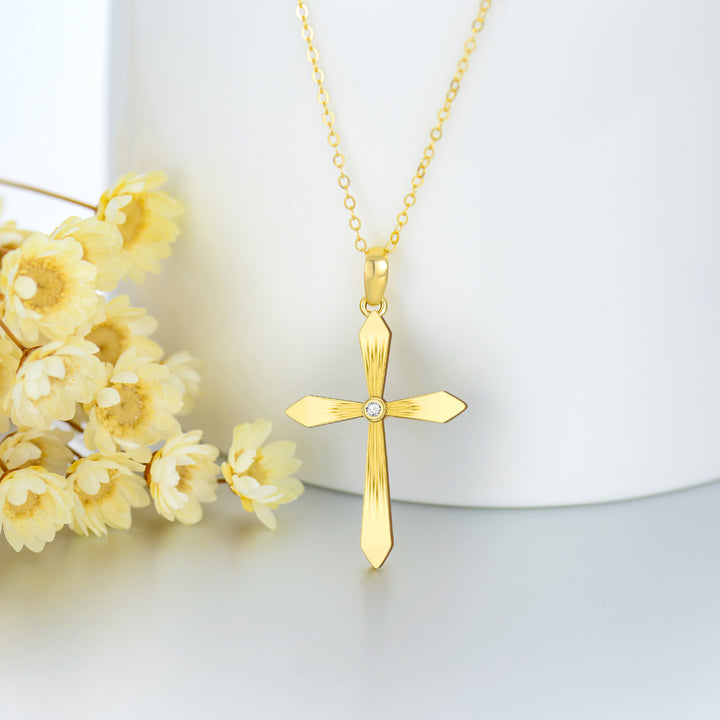 Crafted from high-quality 14K Gold, this unisex Pendant Necklace features a Cross design adorned with dazzling Cubic Zirconia and is customizable with a Personalized Birthstone.