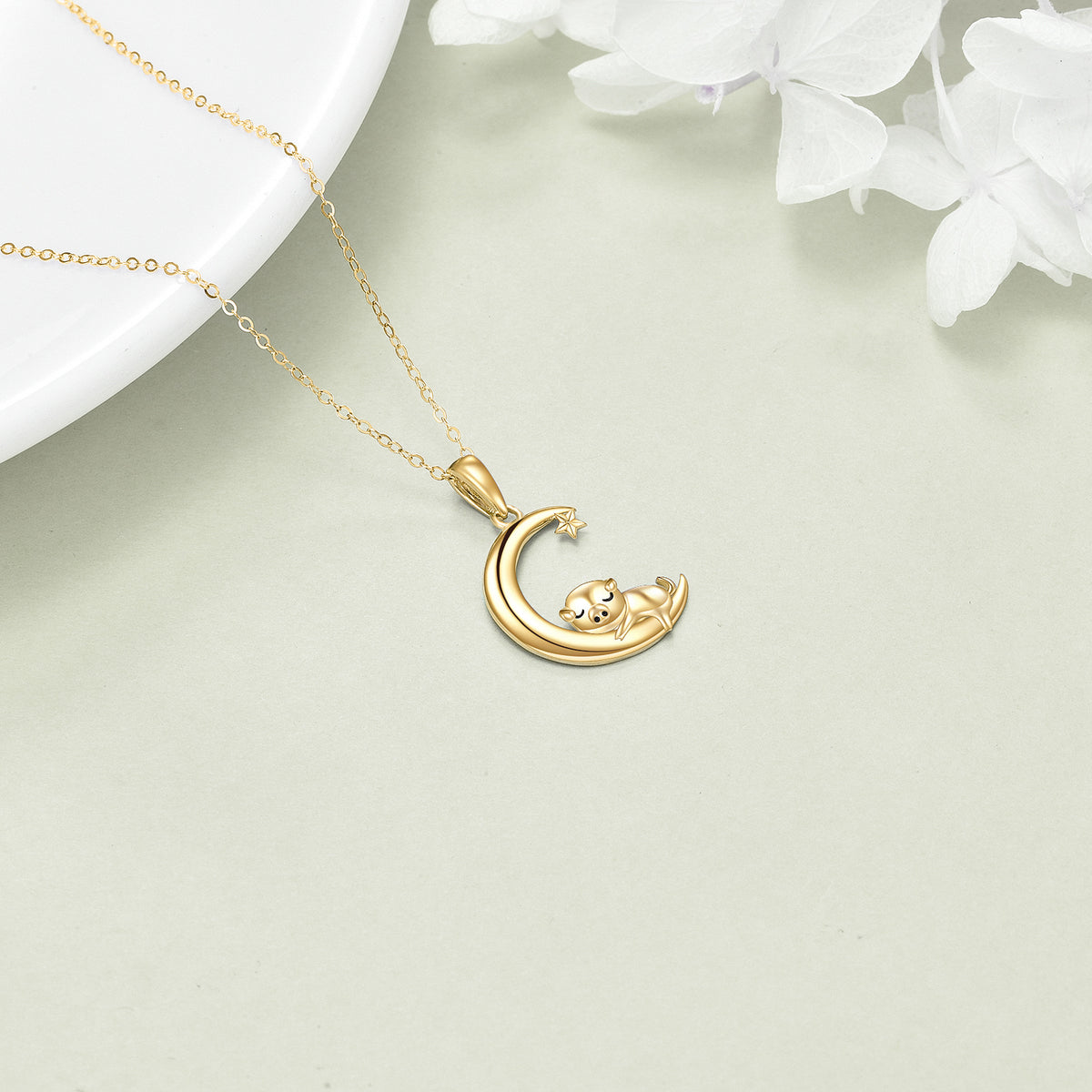 This no-stone Women's Pendant Necklace is crafted from Premium 14K Gold, Featuring a Charming Pig and Moon Motif.