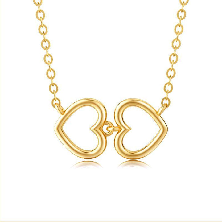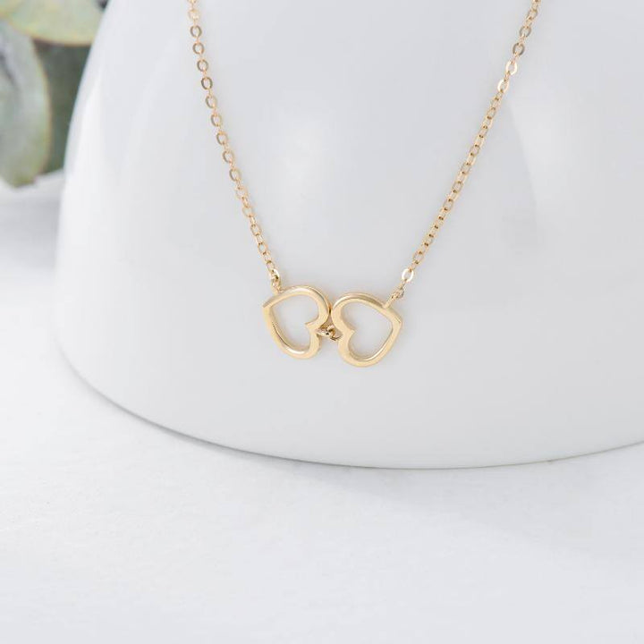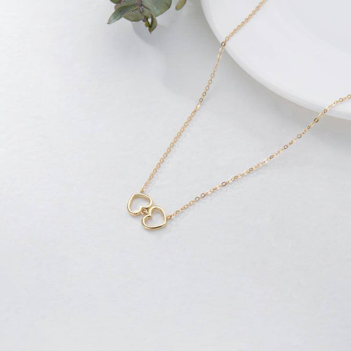 14K Gold Heart Interlocking Pendant Necklace For Women