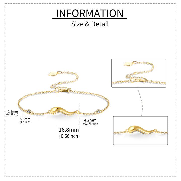 This 14K Gold Cubic Zirconia Italian Horn Bracelet for Women by YFN combines cultural symbolism with refined sparkle. The Italian horn, a traditional emblem of protection and good fortune, is elegantly interpreted in gleaming 14K gold and adorned with radiant cubic zirconia for added brilliance. Designed for women who appreciate jewelry that blends meaning with luxury, this charm bracelet enhances both casual and sophisticated ensembles. Its luminous shine and symbolic charm make it a standout accessory, offering confidence, style, and a touch of good luck wherever it’s worn.