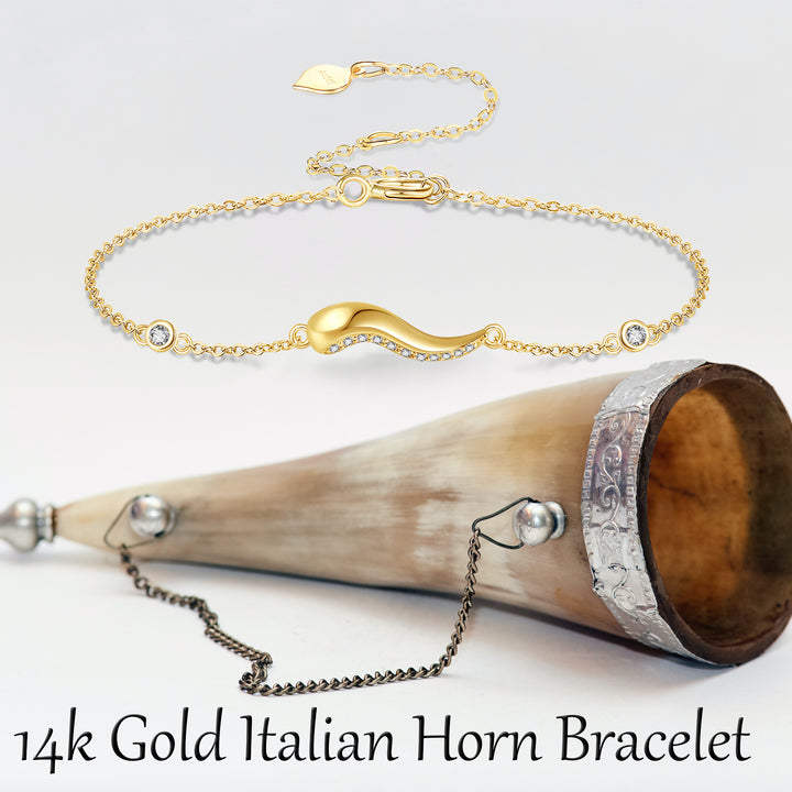 14K Gold Cubic Zirconia Italian Horn Bracelet for Women
