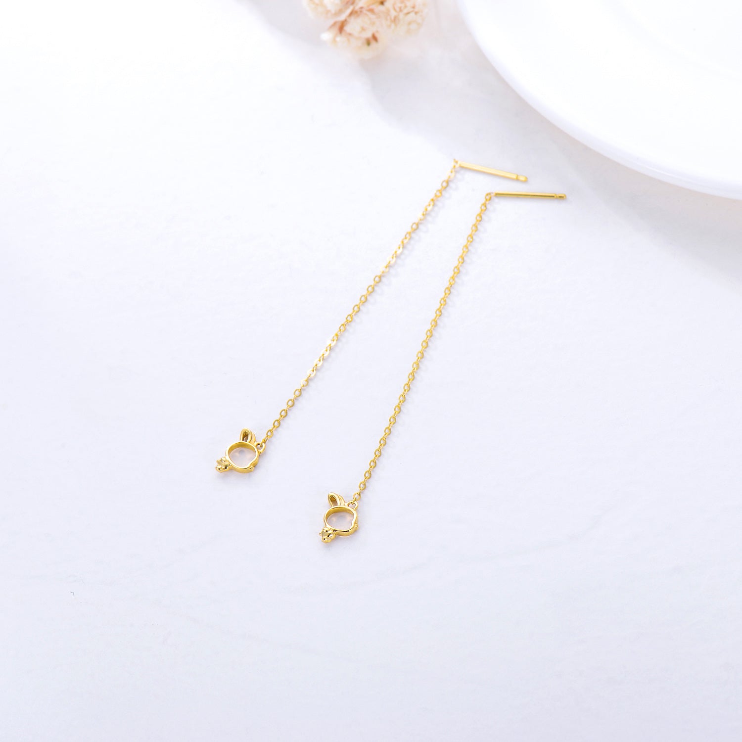 14K Gold Rabbit Drop Earrings