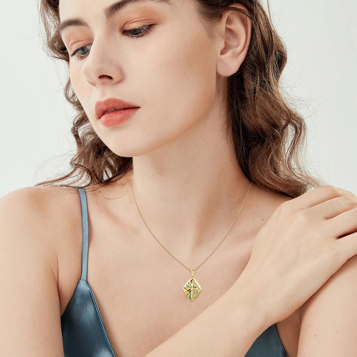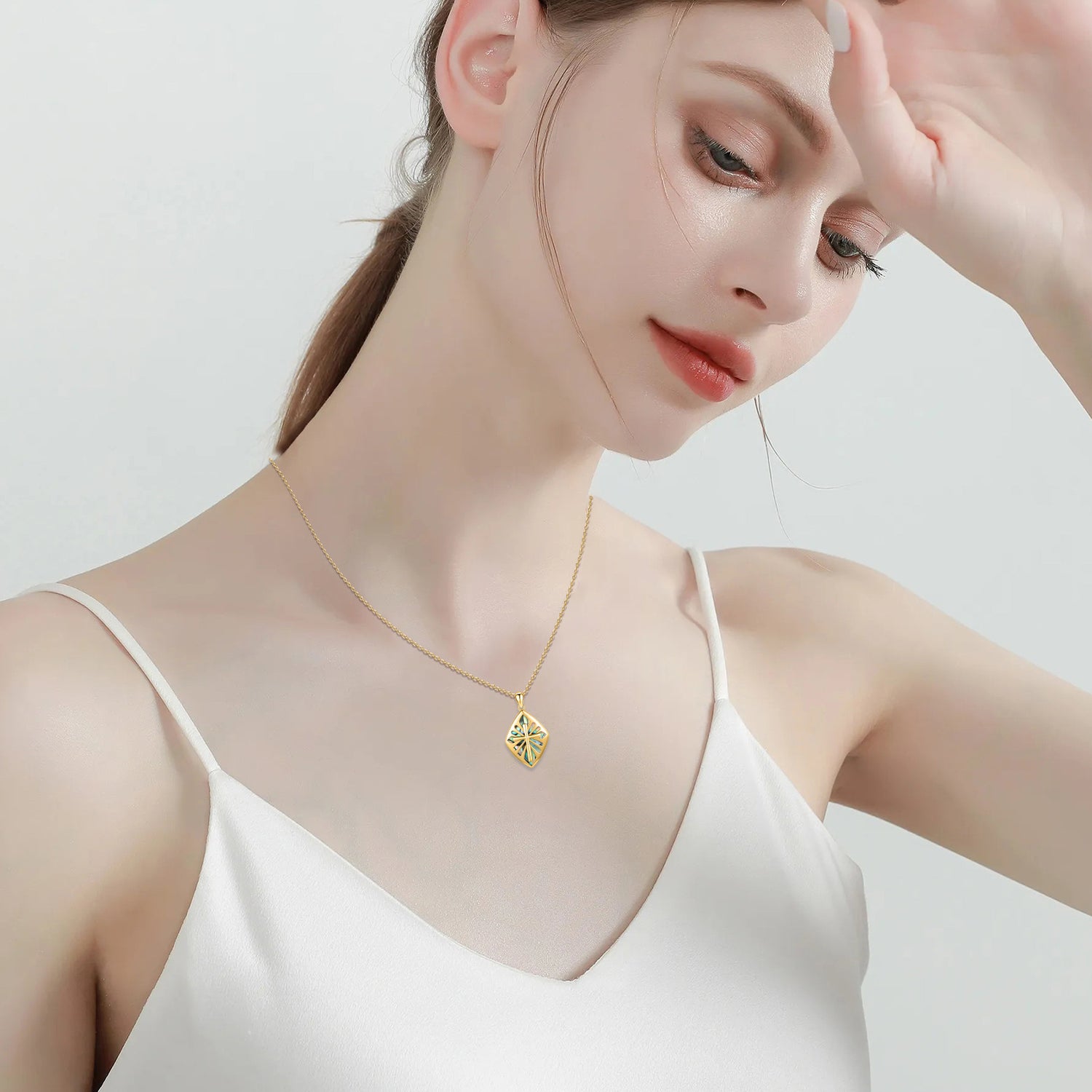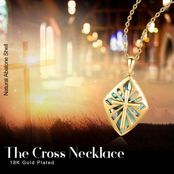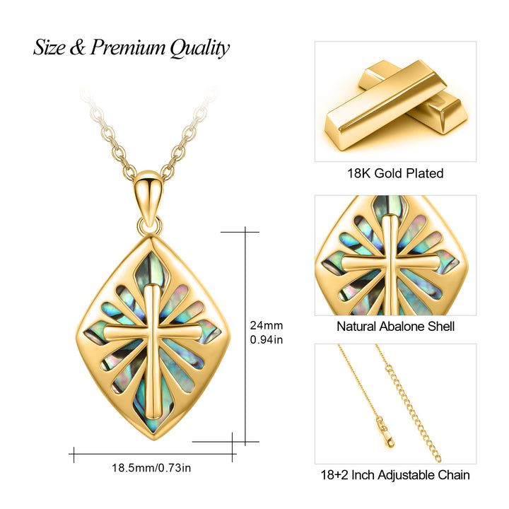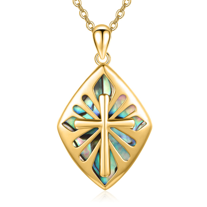 This Women's Pendant Necklace is crafted from Sterling Silver with Yellow Gold Plated Finish, Featuring a Mesmerizing Abalone Shellfish Cross.