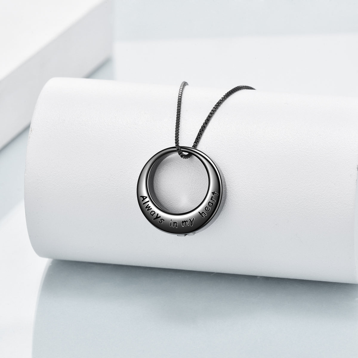 This Sterling Silver with Black Rhodium Celtic Knot Urn Necklace for Ashes by YFN is an exquisite and sentimental piece for women. Crafted without stones, the design highlights the intricate Celtic Knot motif. Finished with sophisticated Black Rhodium, this sterling silver urn necklace offers a contemporary touch and a cherished, durable keepsake.