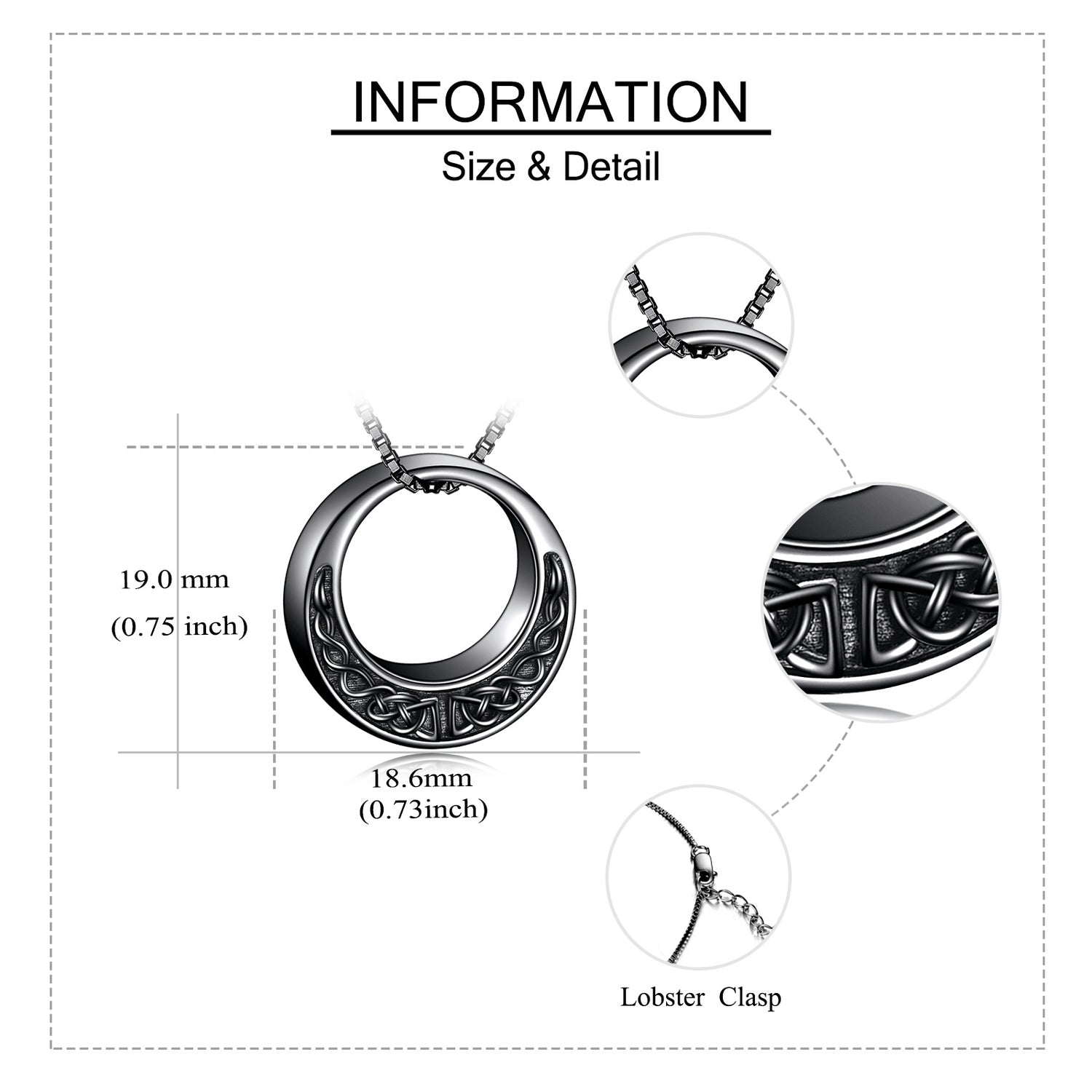 This no-stone Urn Necklace for Ashes is crafted from Sterling Silver with Black Rhodium Finish, Featuring an Intricate Celtic Knot Motif.