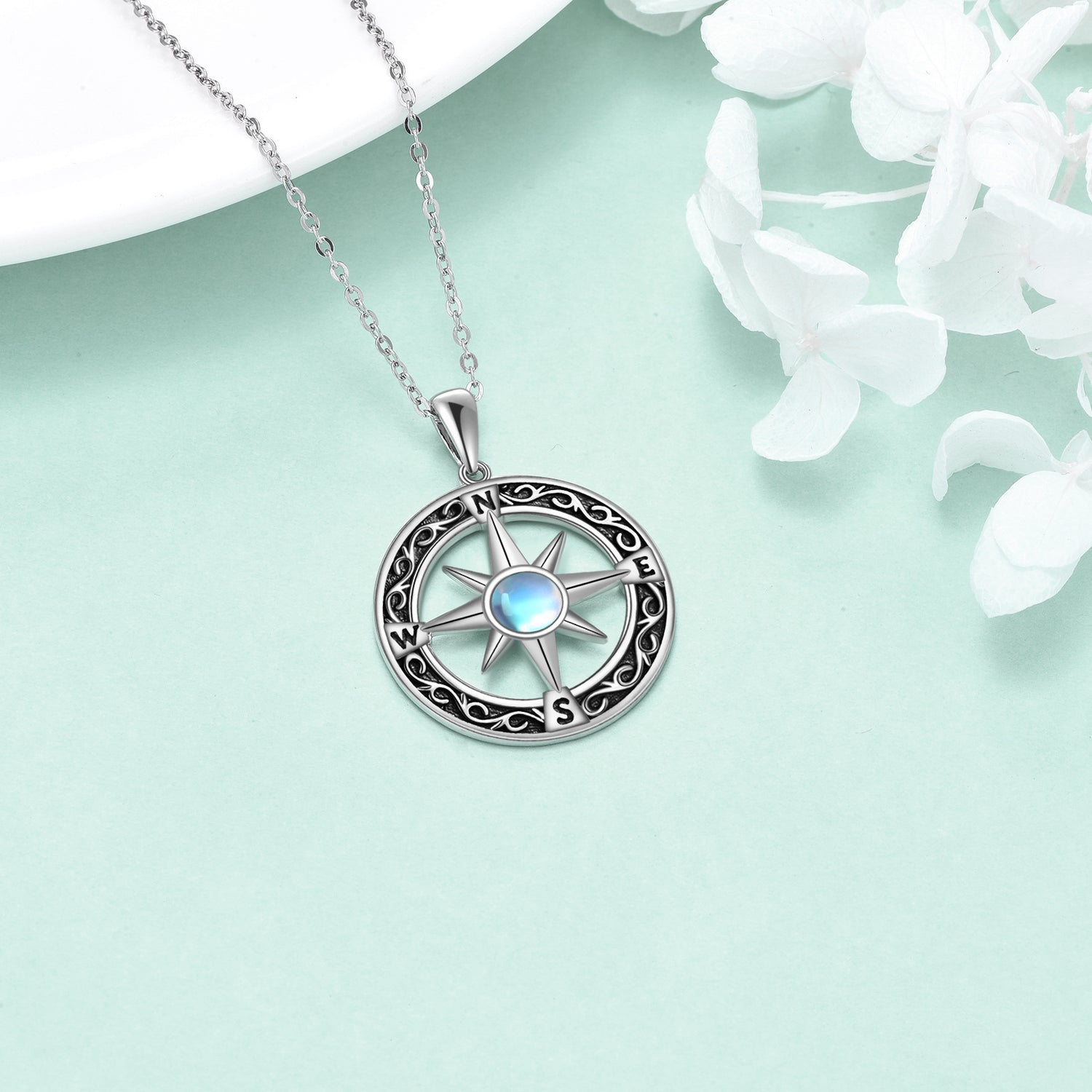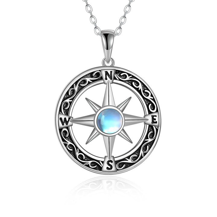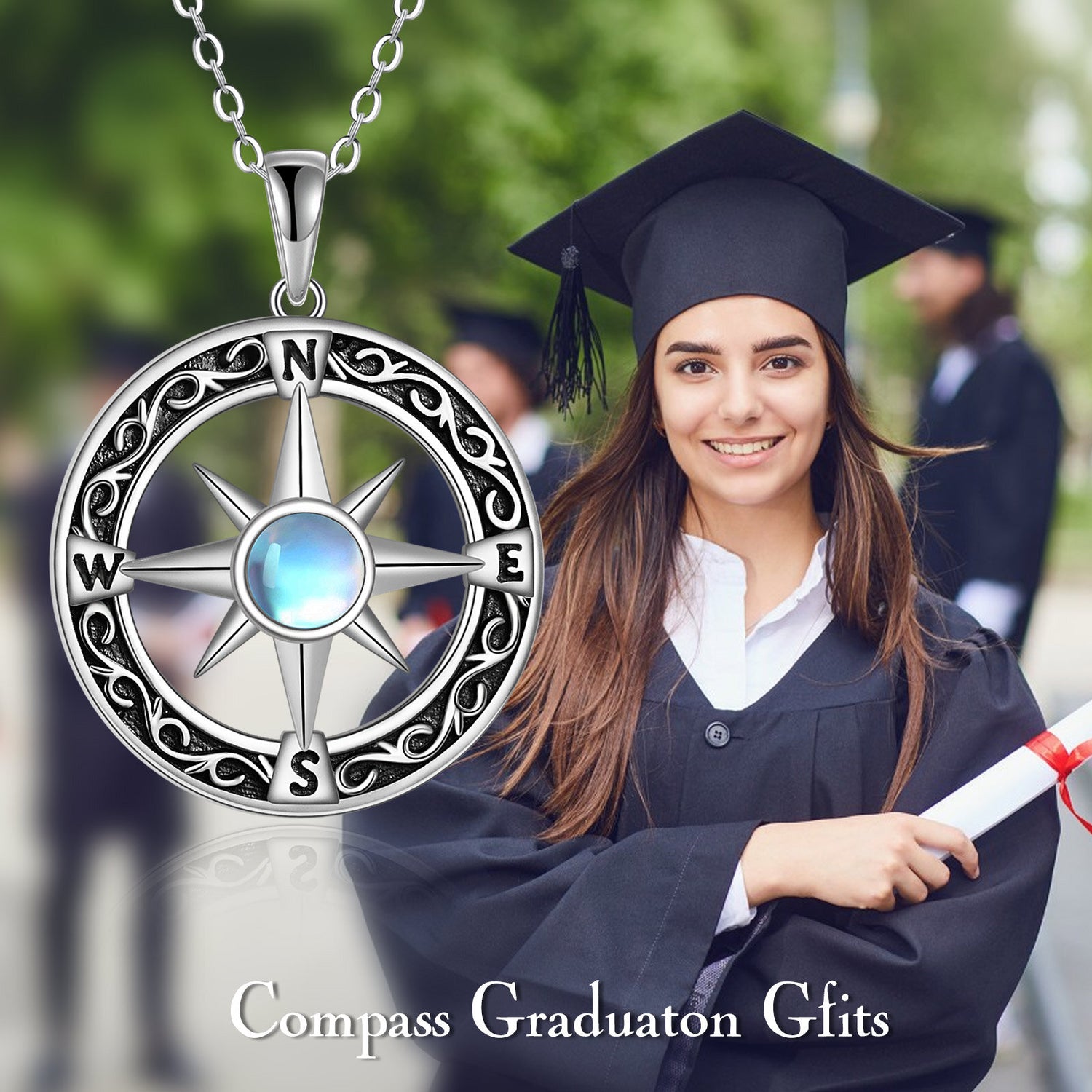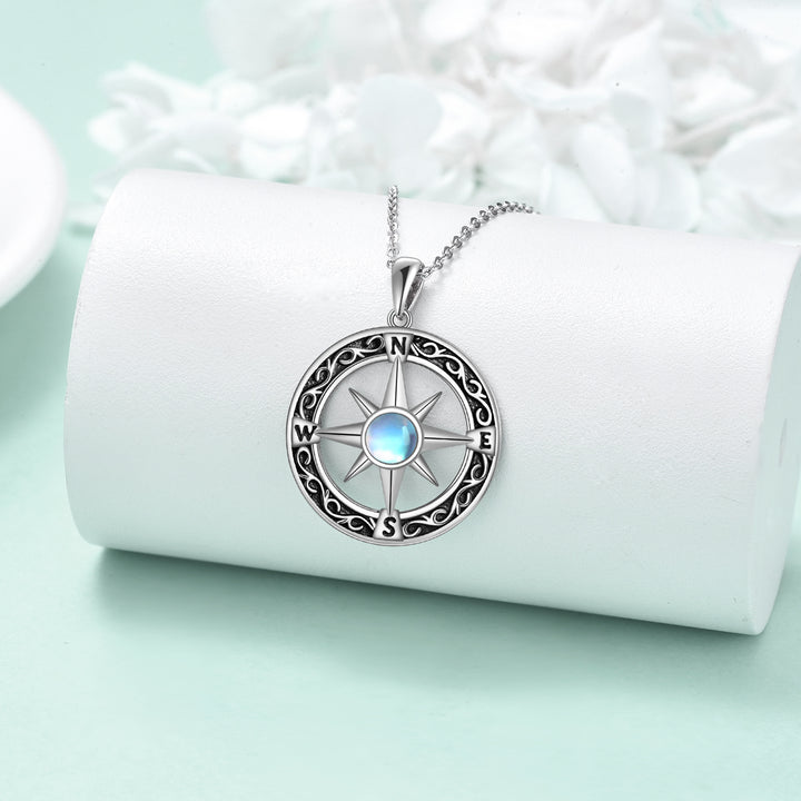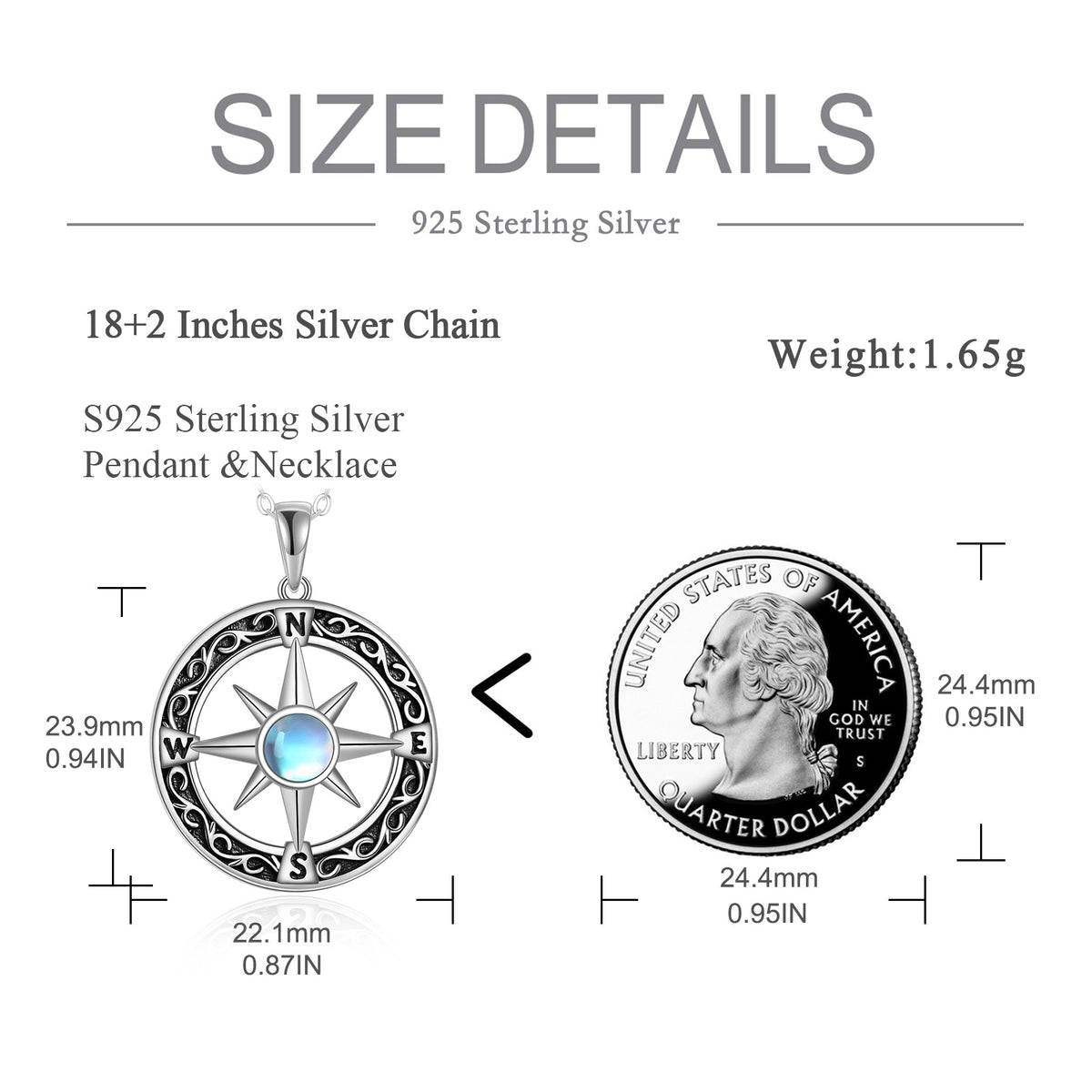 Sterling Silver Round Moonstone Compass Pendant Necklace Gift for Graduates