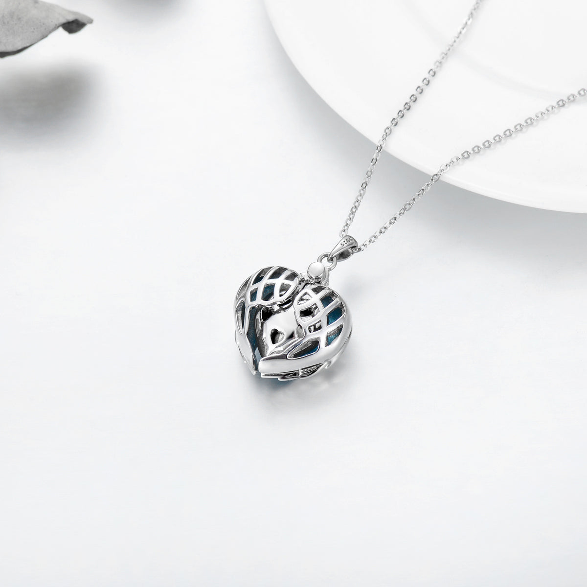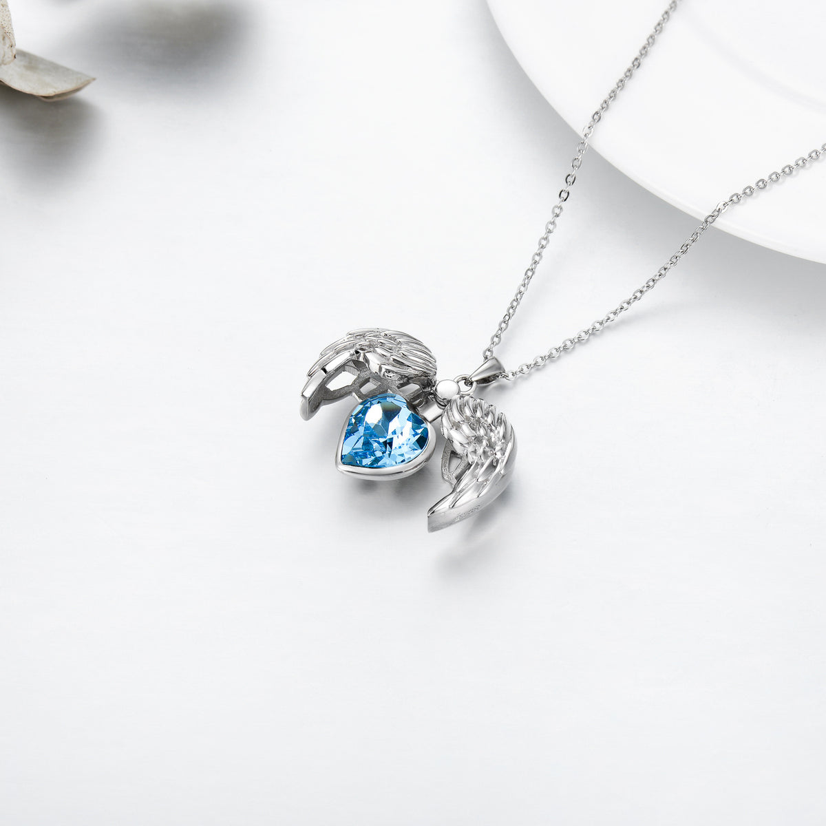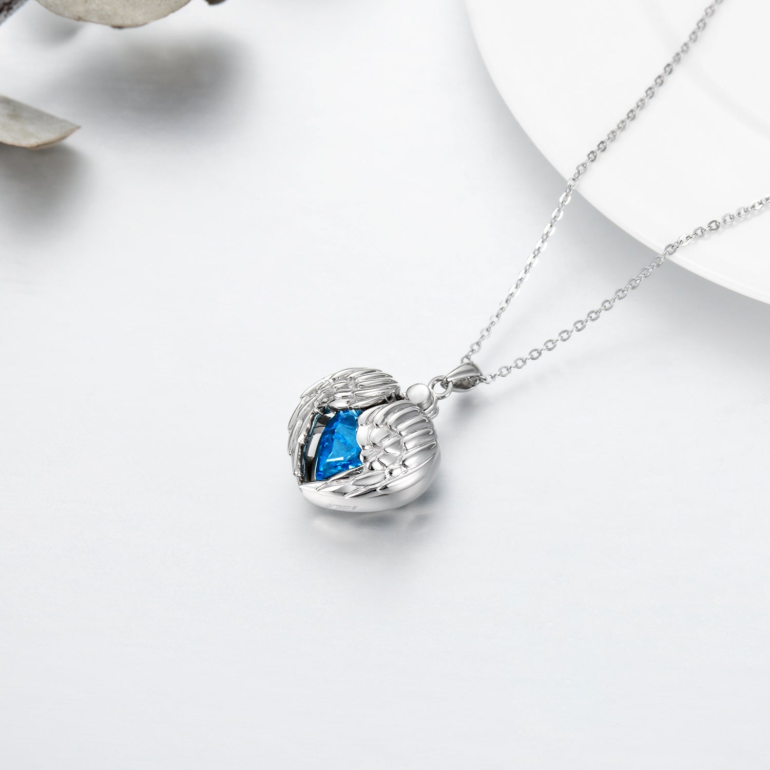 Sterling Silver Cubic Zirconia Angel Wing & Heart Pendant Necklace