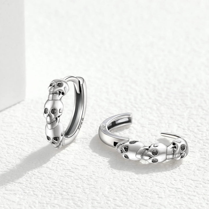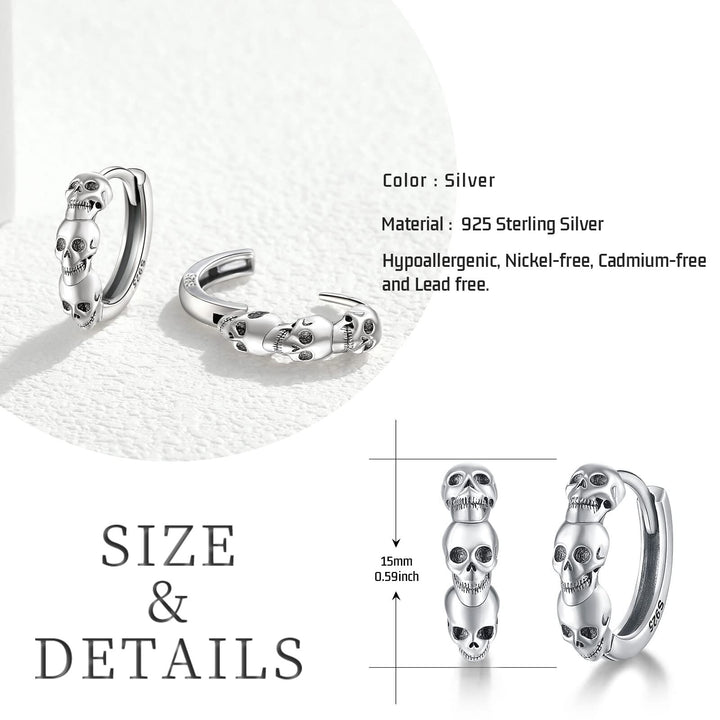 Sterling Silver Skull Hoop Earrings