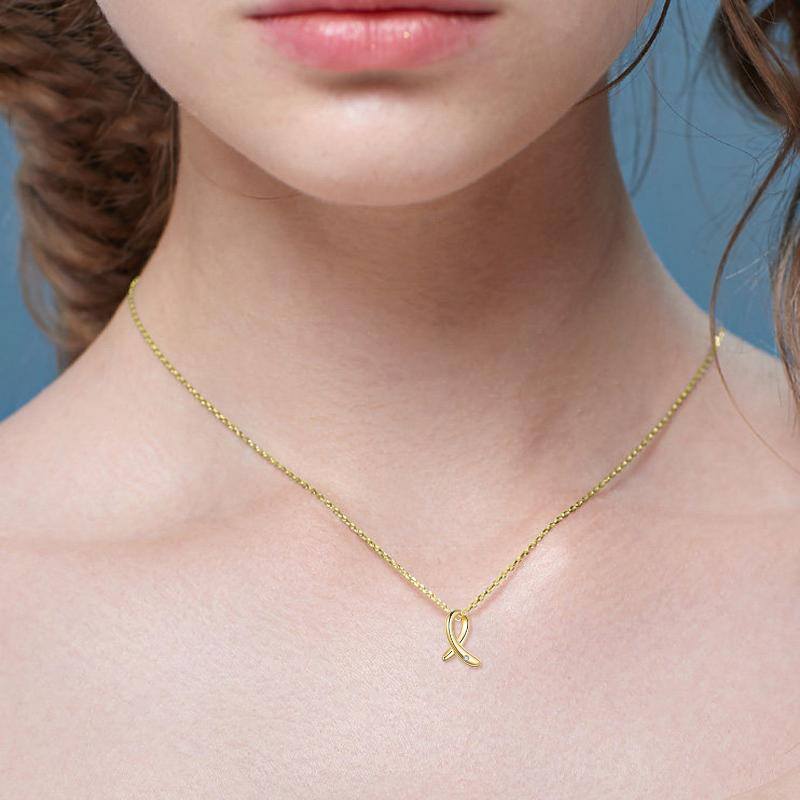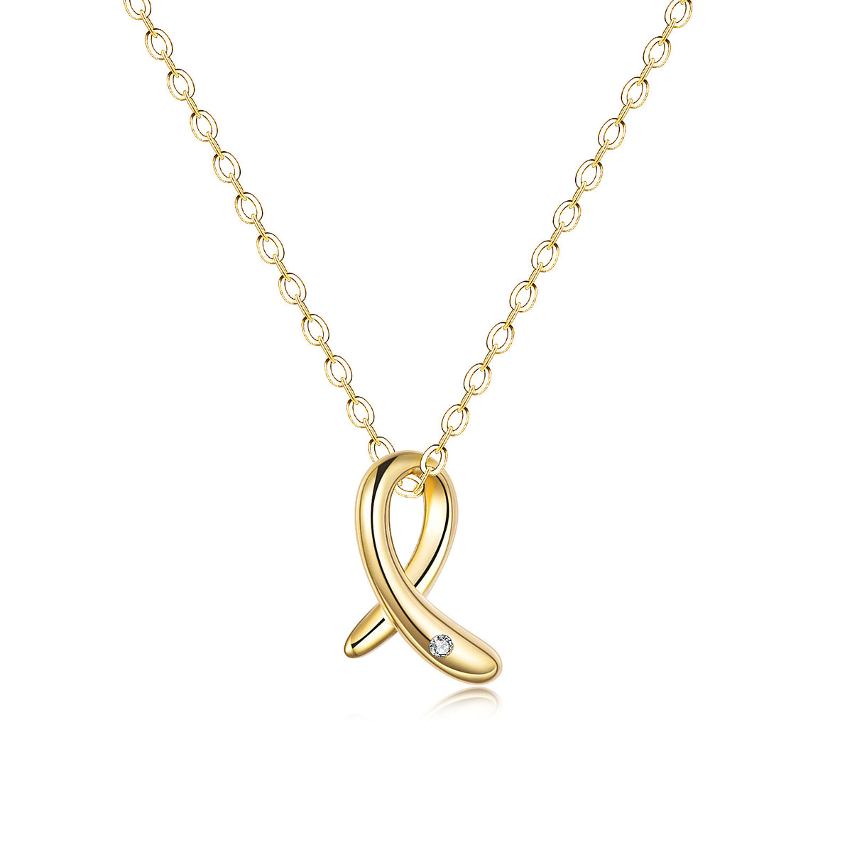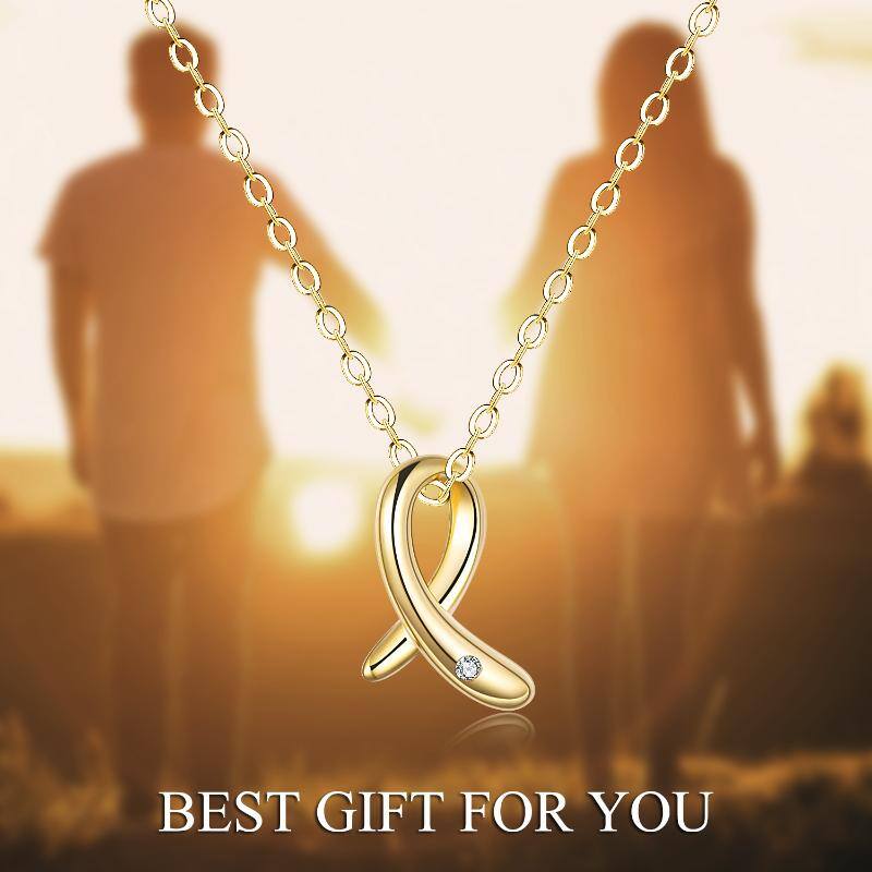 14K Gold Moissanite Breast Cancer Pendant Necklace