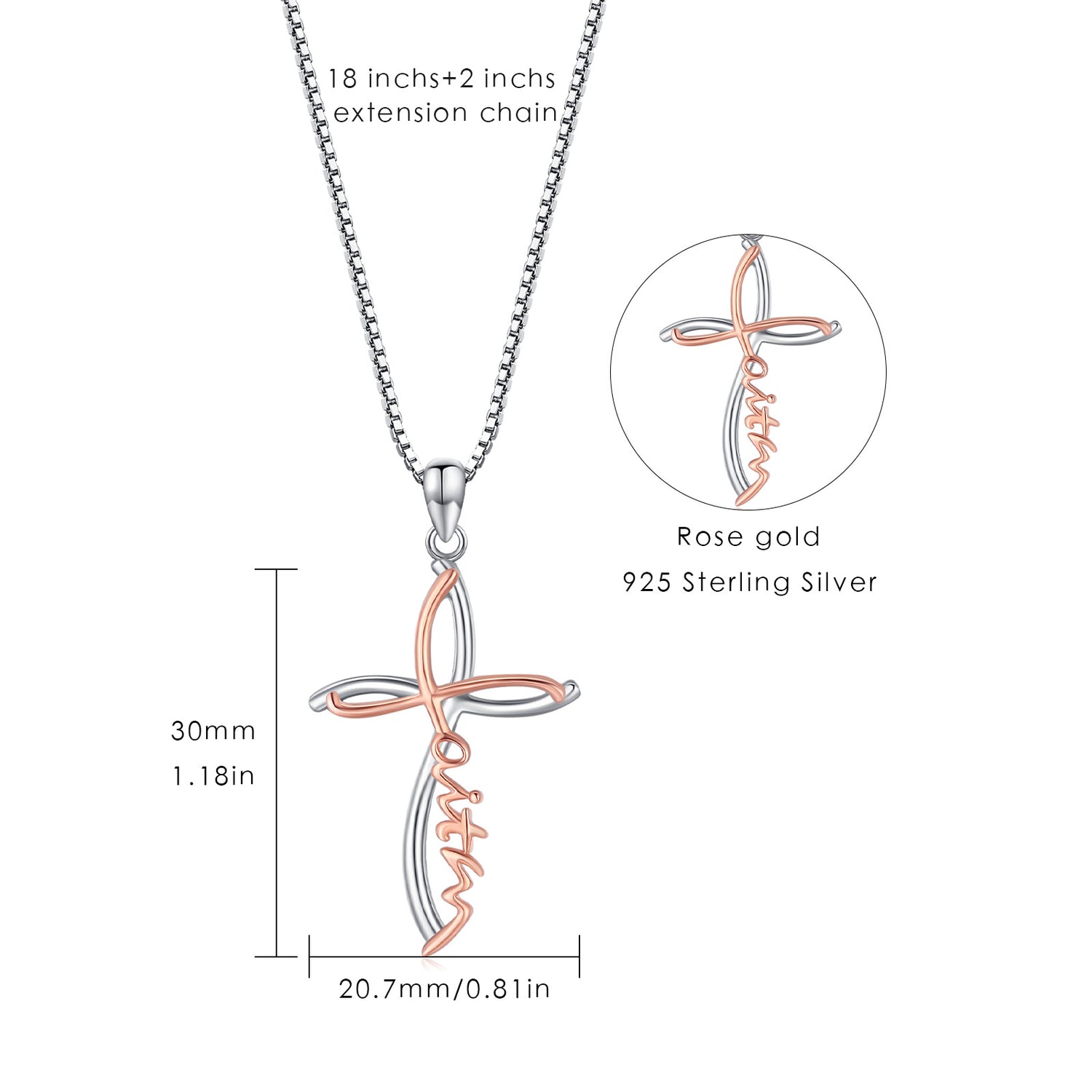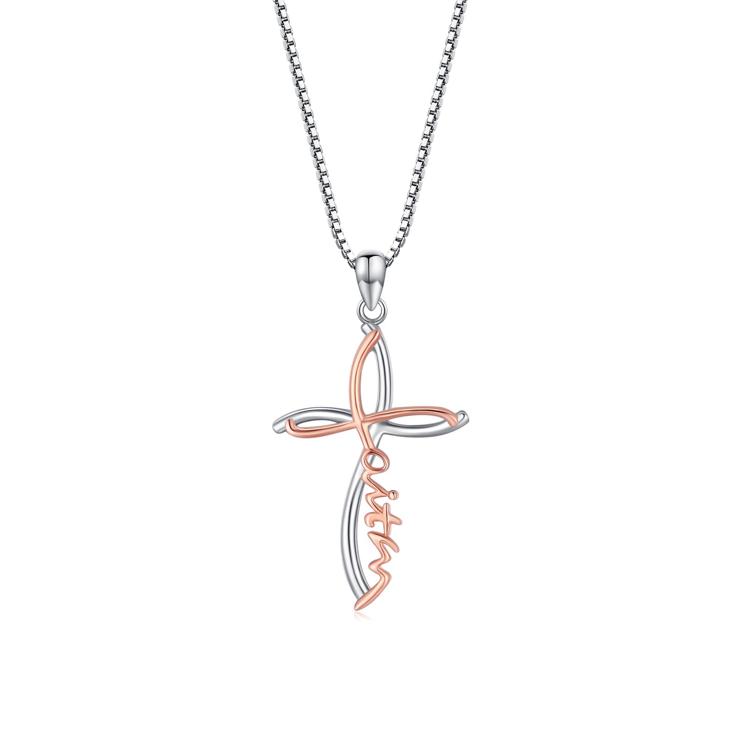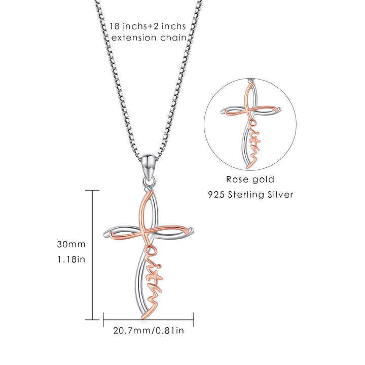 This Sterling Silver Two-tone Cross Faith Pendant Necklace with Engraved Word by YFN is a sophisticated and heartfelt expression of faith for women. Crafted from high-quality sterling silver, the stone-free cross pendant features a sleek, modern design highlighted by the captivating contrast between silver and warm rose gold (Two-tone). This piece is an elegant and feminine choice for any occasion, allowing you to honor your beliefs and stand out effortlessly with refined style.
