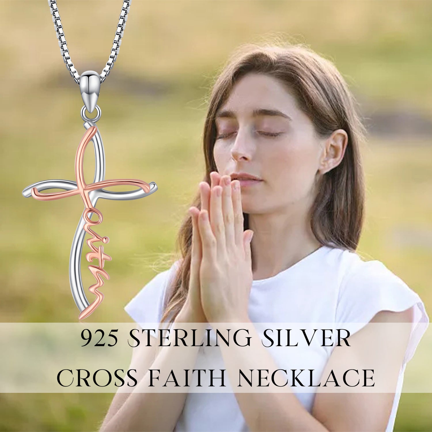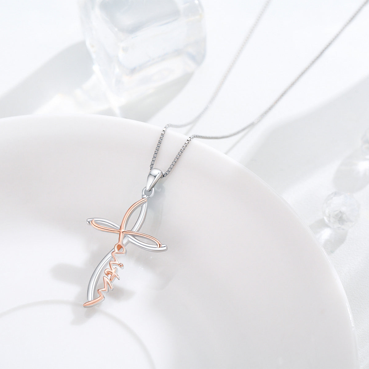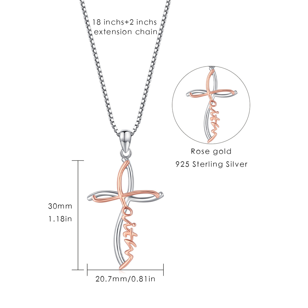 This Sterling Silver Two-tone Cross Faith Pendant Necklace with Engraved Word by YFN is a sophisticated and heartfelt expression of faith for women. Crafted from high-quality sterling silver, the stone-free cross pendant features a sleek, modern design highlighted by the captivating contrast between silver and warm rose gold (Two-tone). This piece is an elegant and feminine choice for any occasion, allowing you to honor your beliefs and stand out effortlessly with refined style.