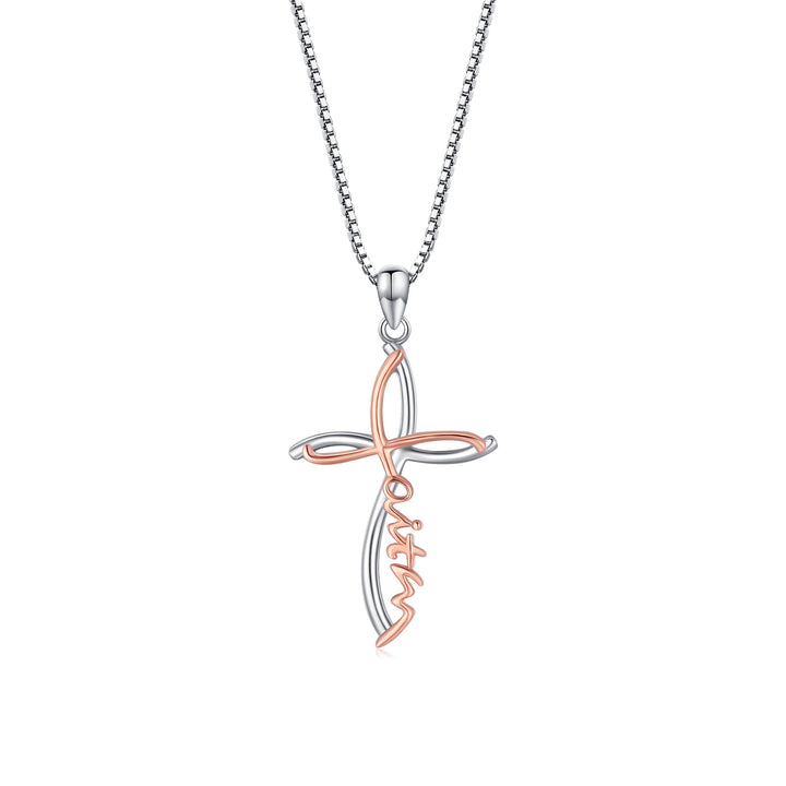 Sterling Silver Two-tone Cross Faith Pendant Necklace with Engraved Word