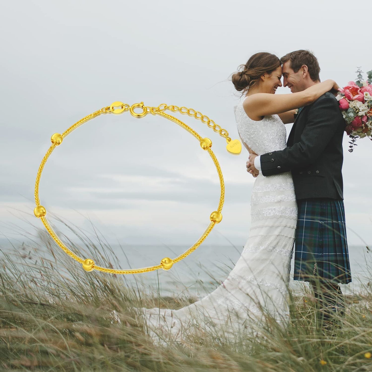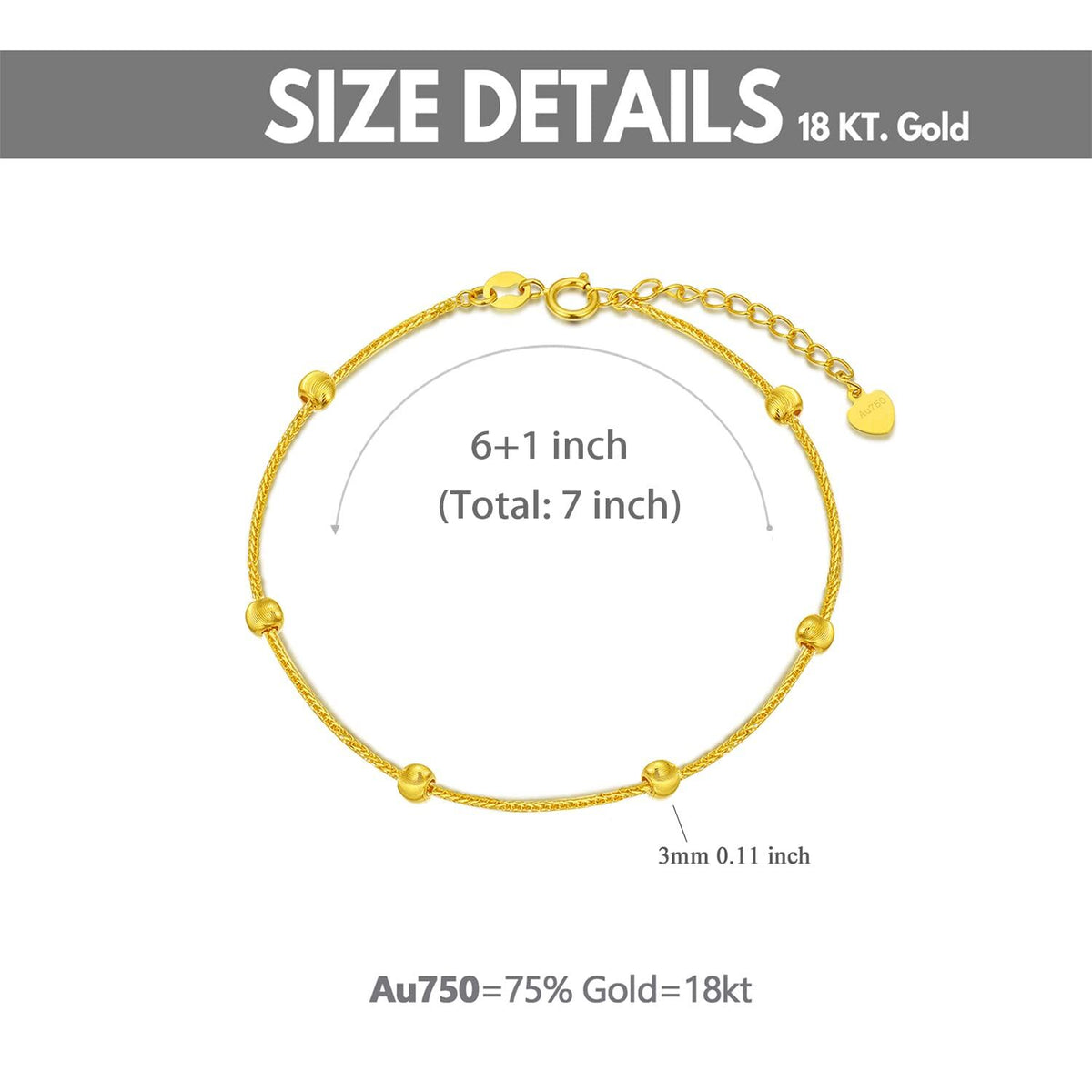 18K Gold Bead Bead Station Chain Bracelet For Women